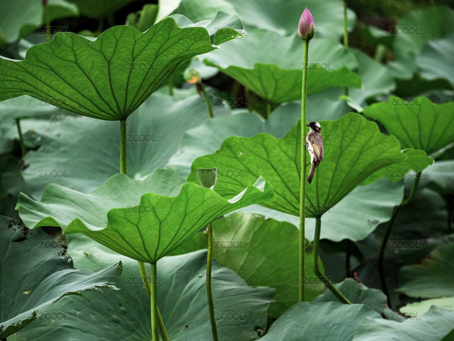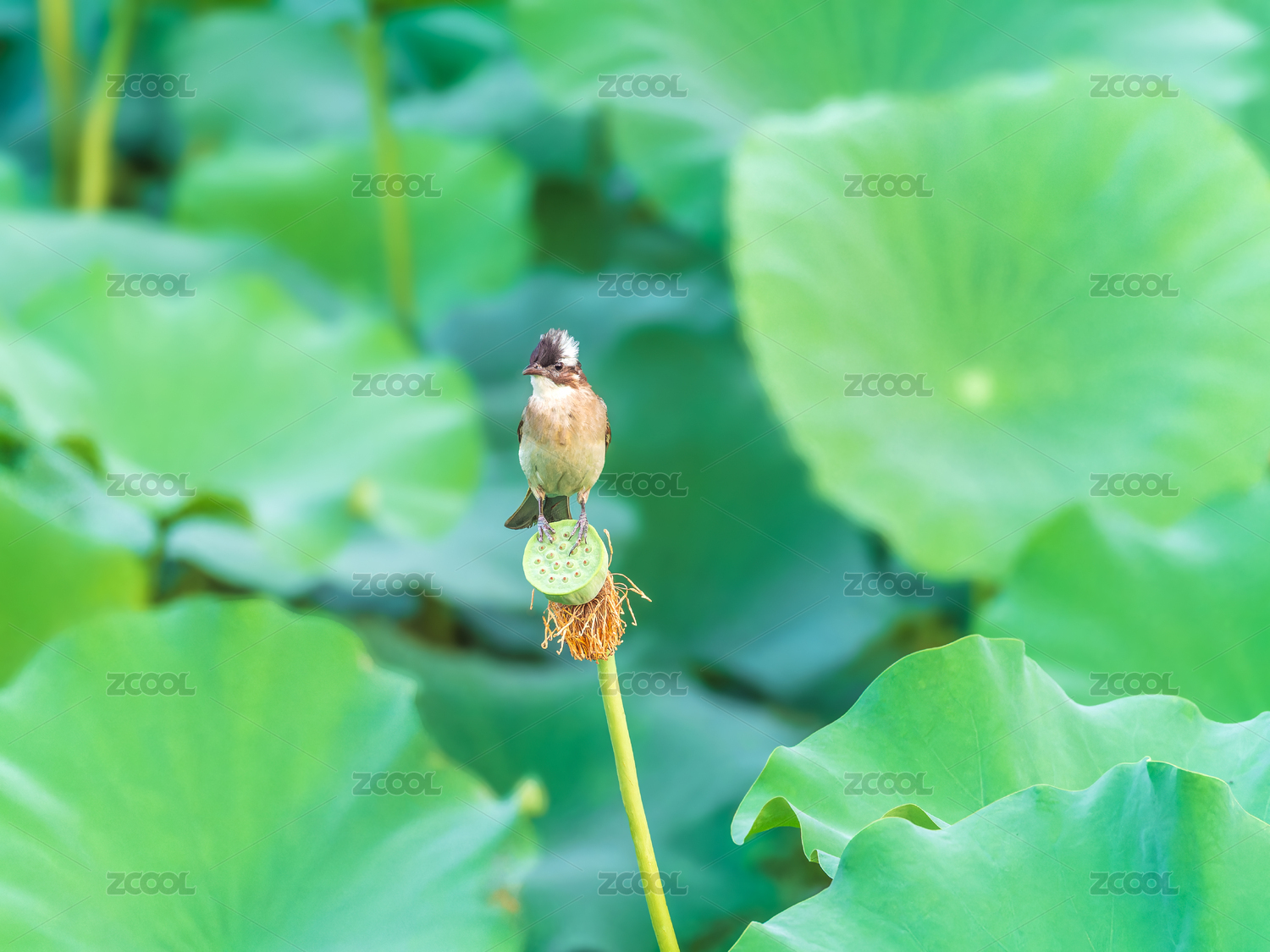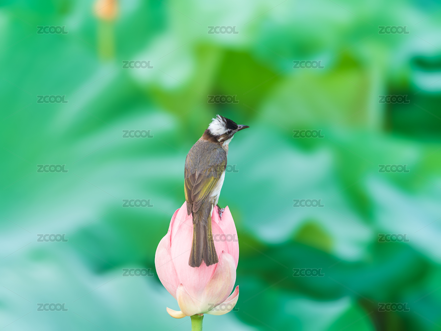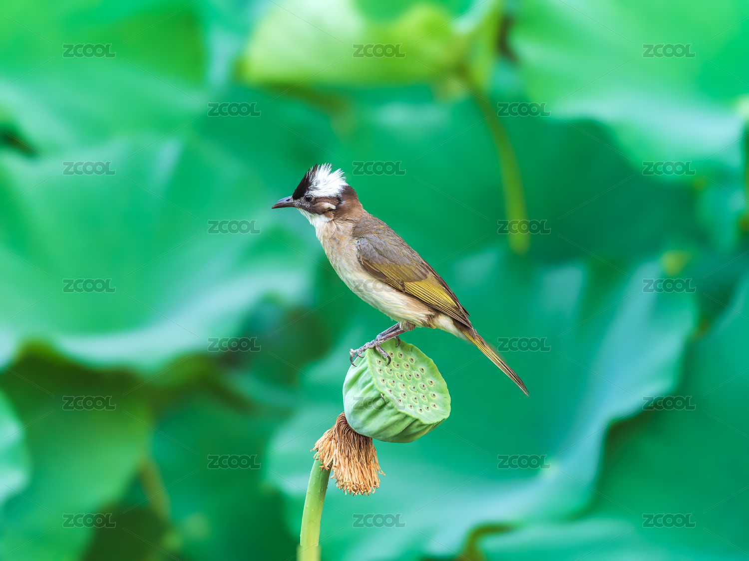 白頭鵯白頭翁荷花荷葉上的小鳥