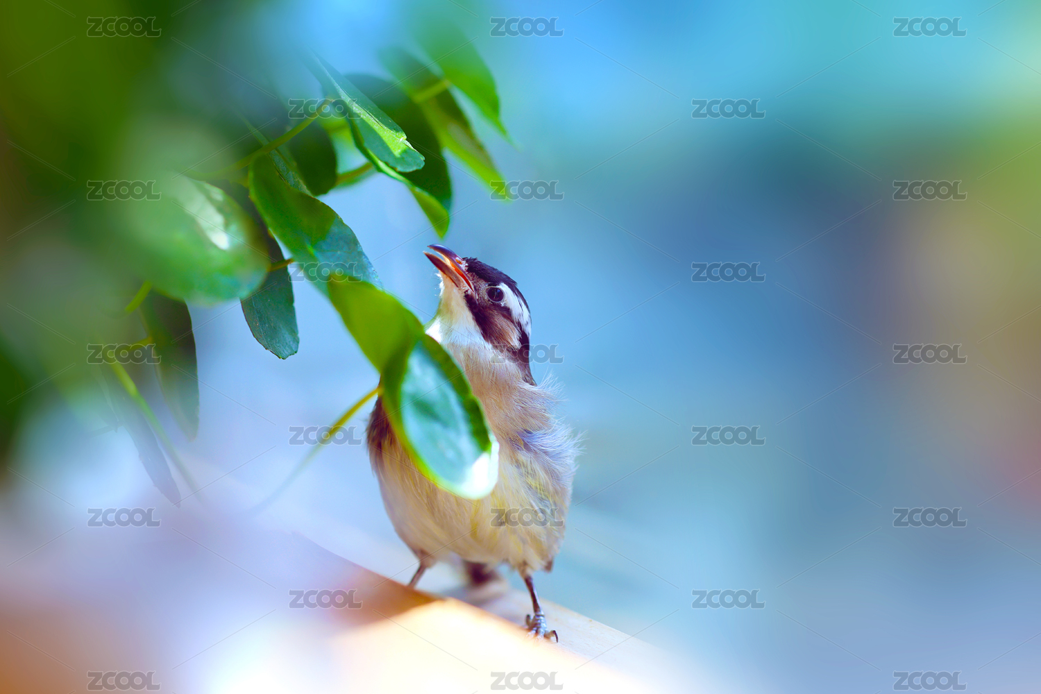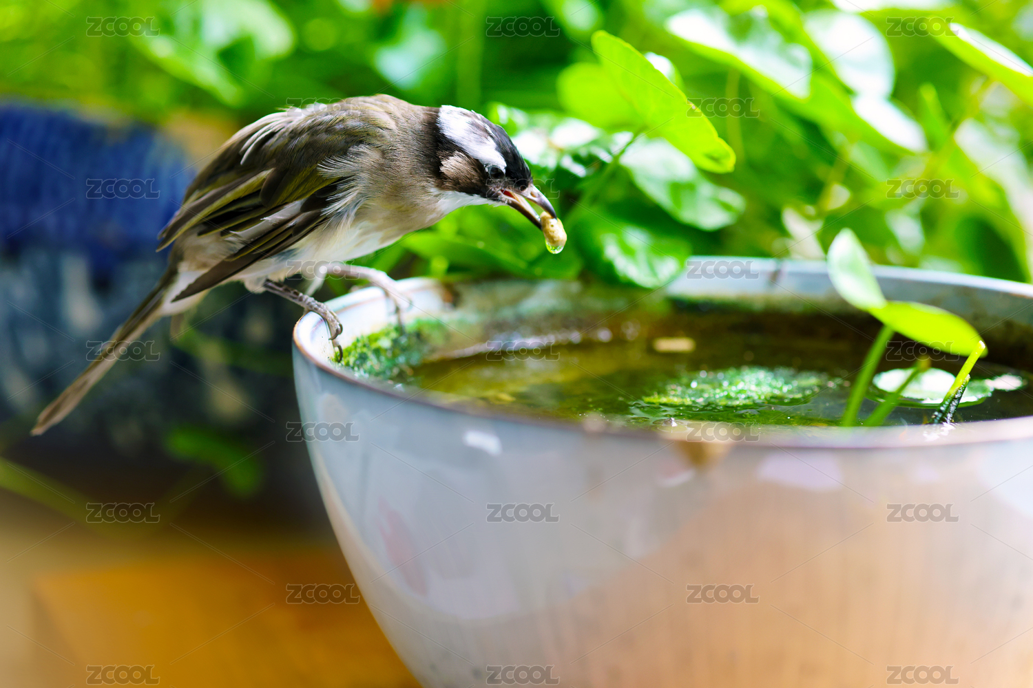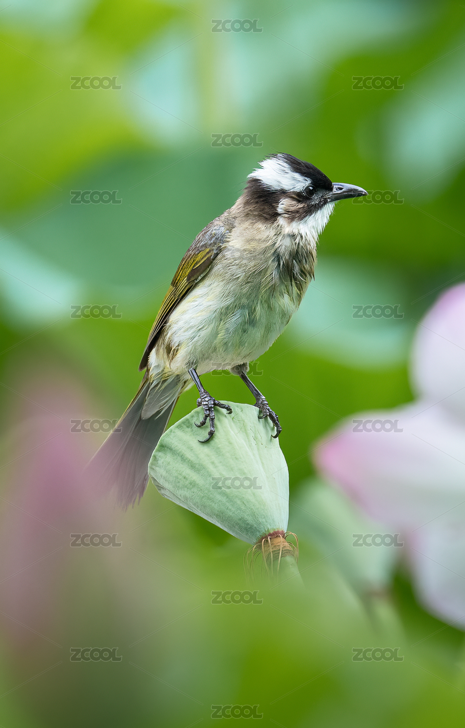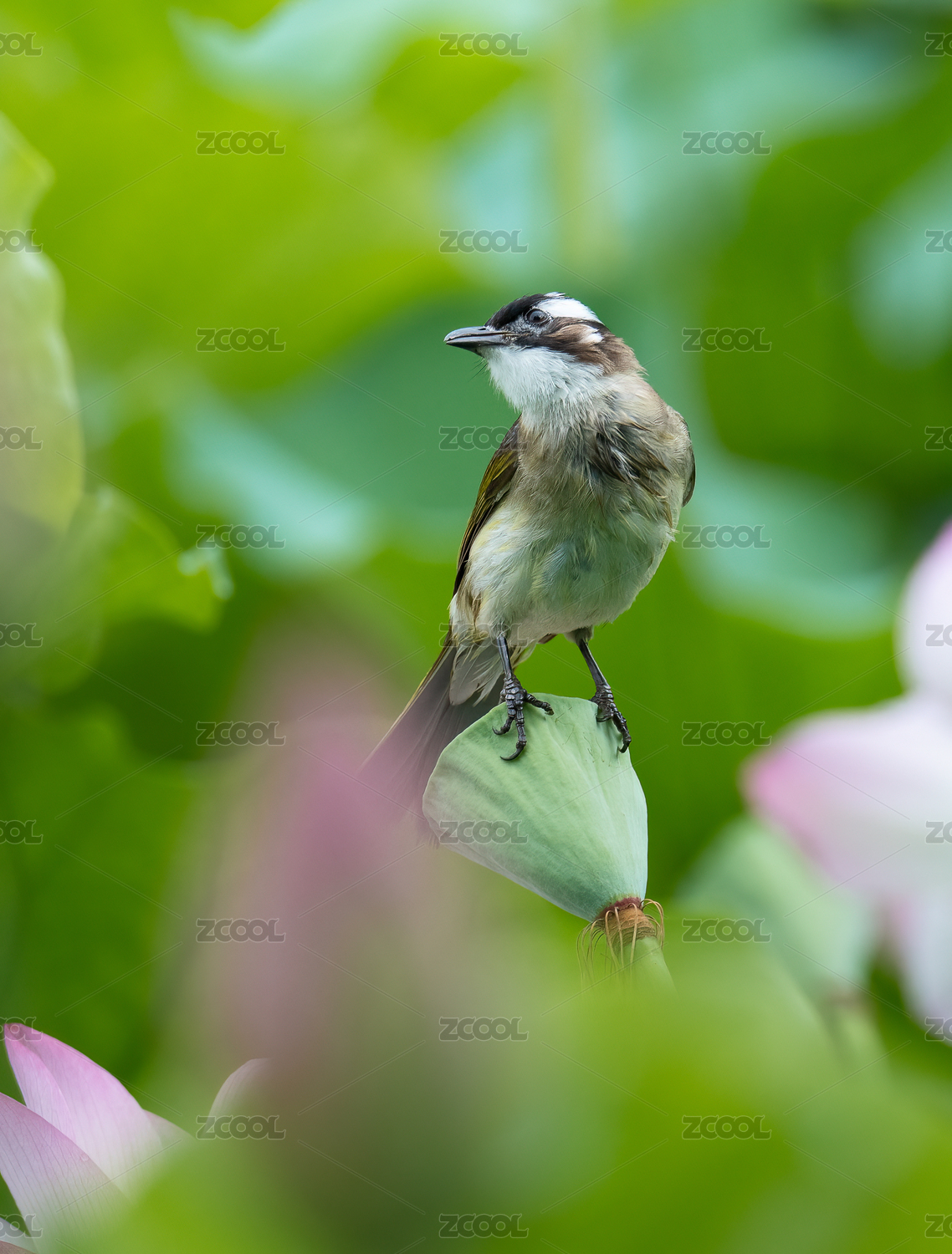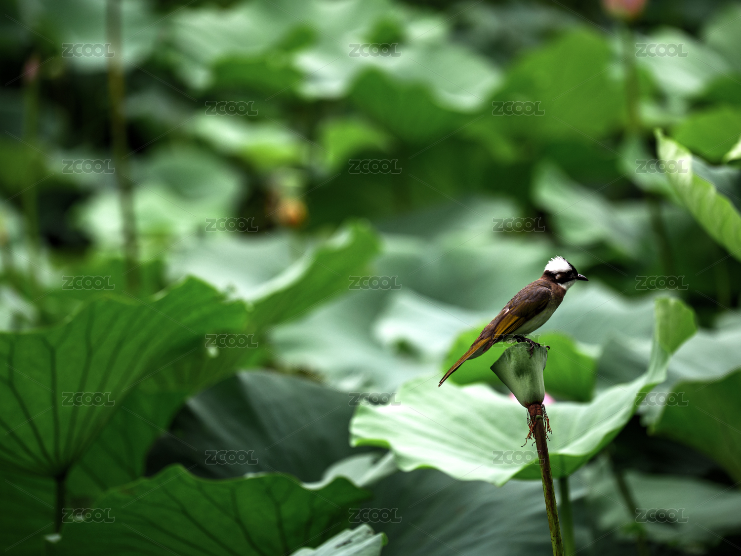 白頭鵯白頭翁荷花荷葉上的小鳥