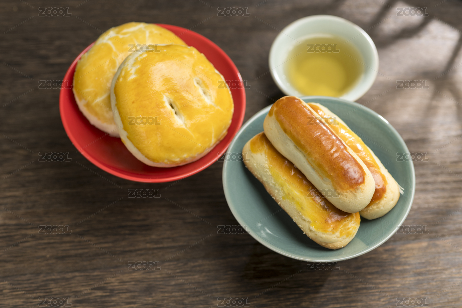 傳統(tǒng)點(diǎn)心豆沙條擺放在古窗欞木桌面上