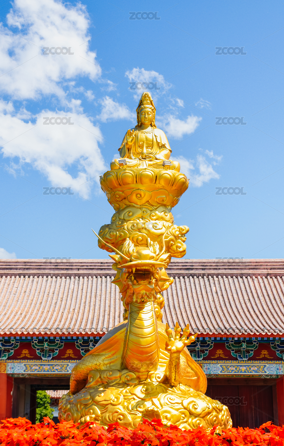 海南省澄邁縣永慶寺門口金身觀音佛像與正門