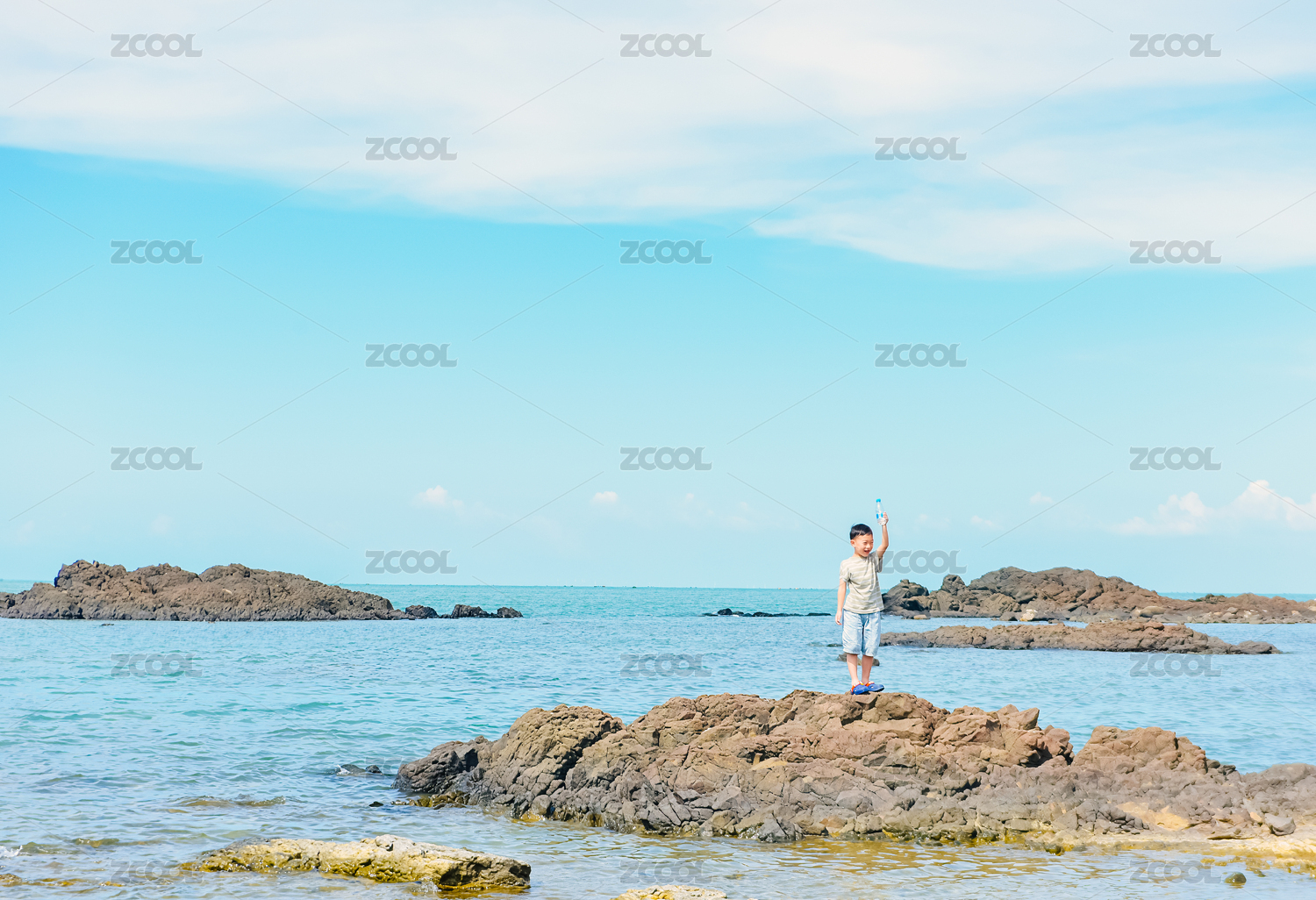 一位亞洲兒童在海南省東線澄邁縣的雷公島