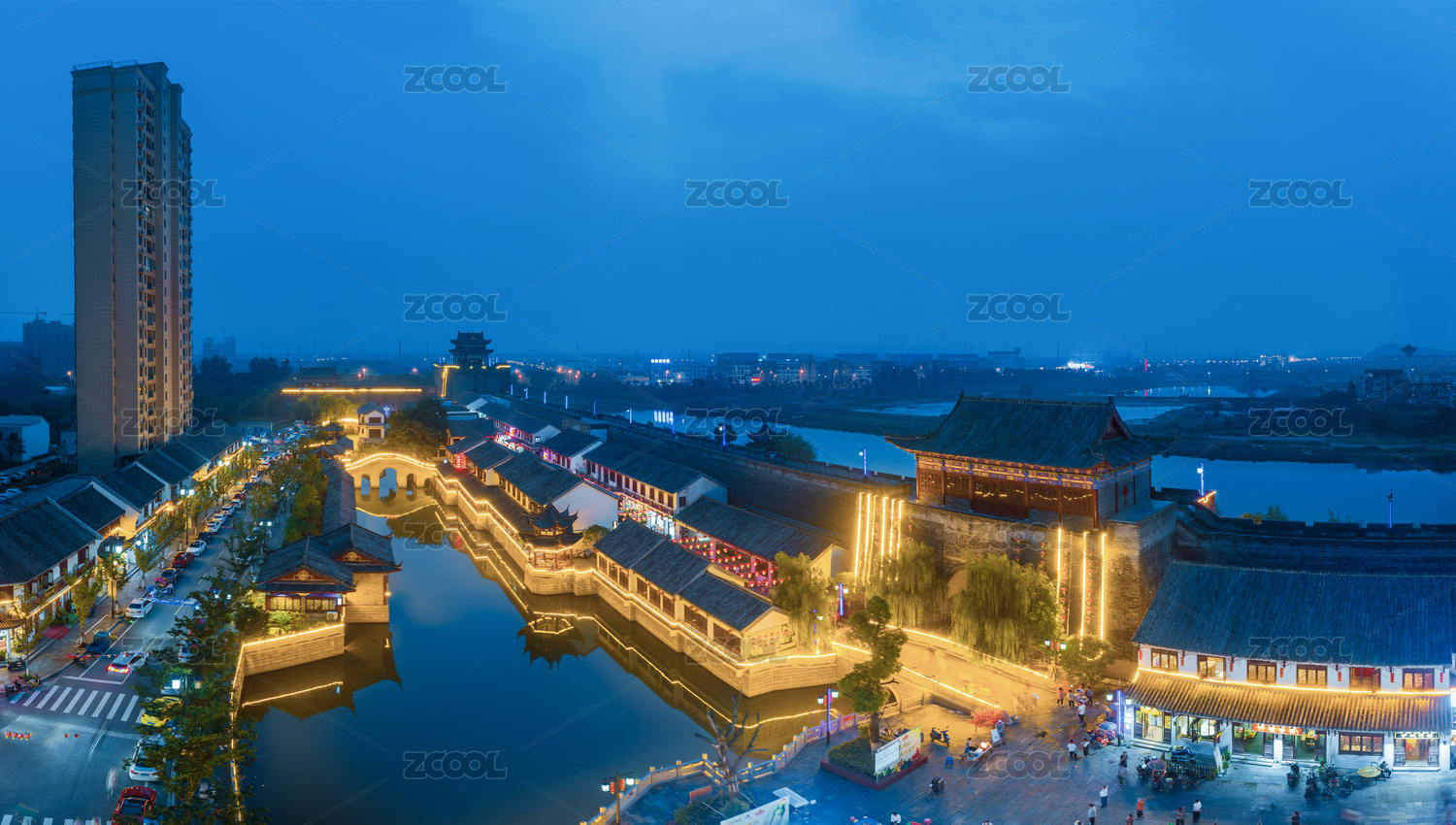 航拍安徽馬鞍山古建筑商業(yè)街區(qū)夜景