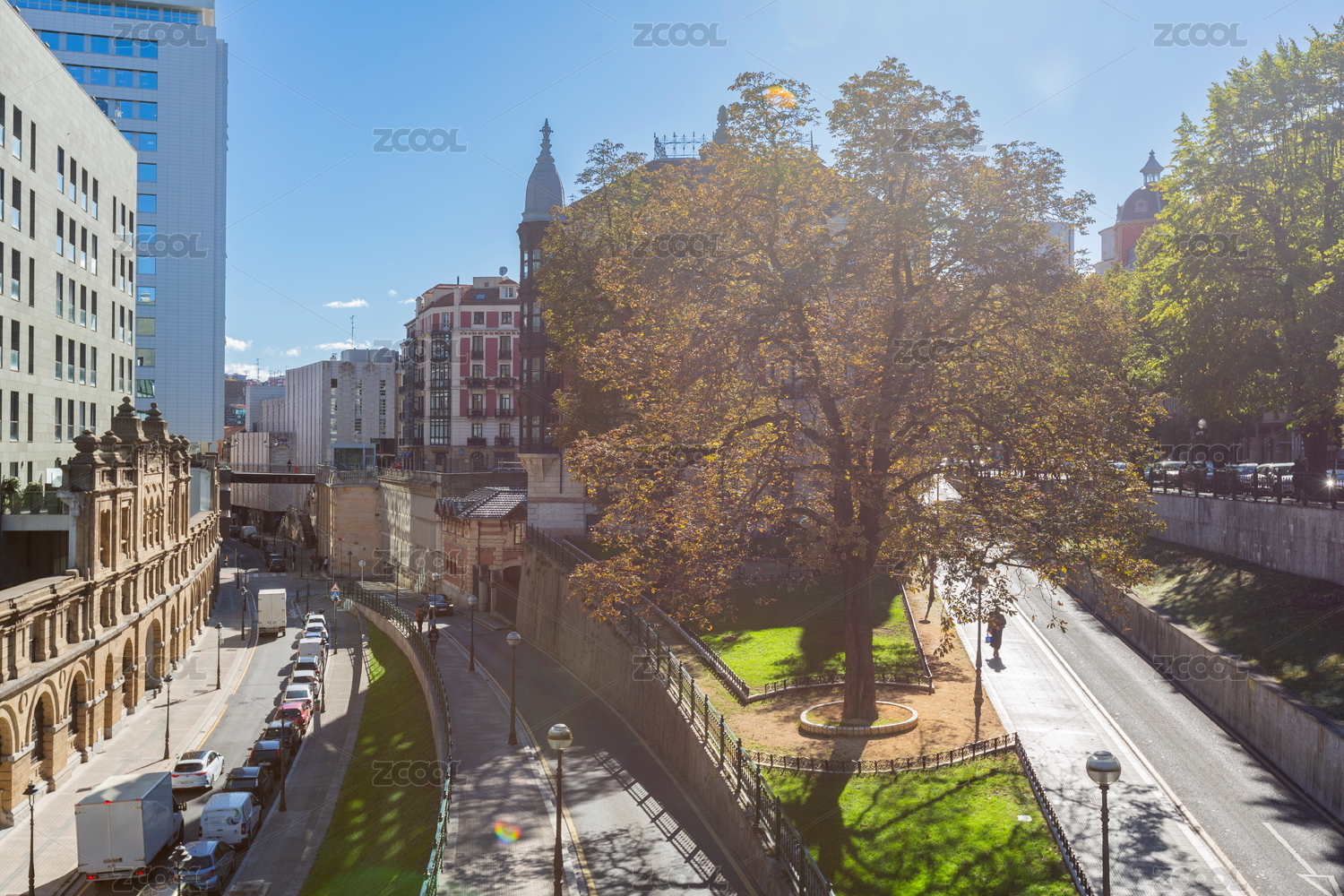 西班牙畢爾巴鄂秋天城市街景