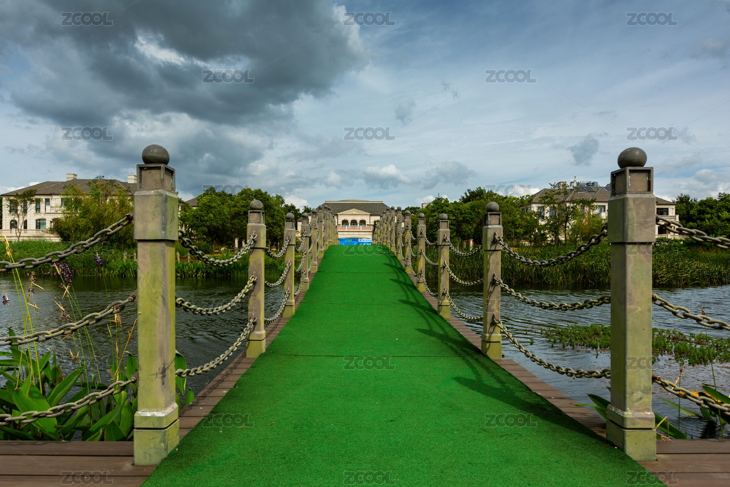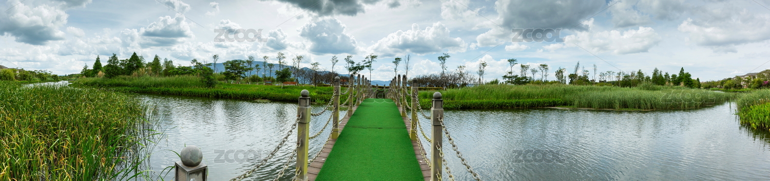中國(guó)云南昆明星海濕地公園藍(lán)天白云小橋