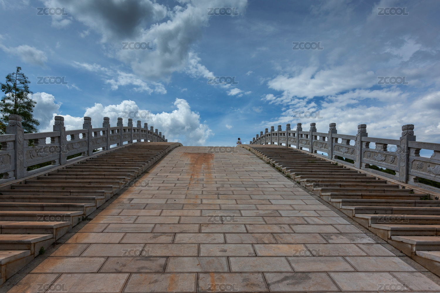 云南昆明星海濕地公園藍(lán)天白云襯托石拱橋