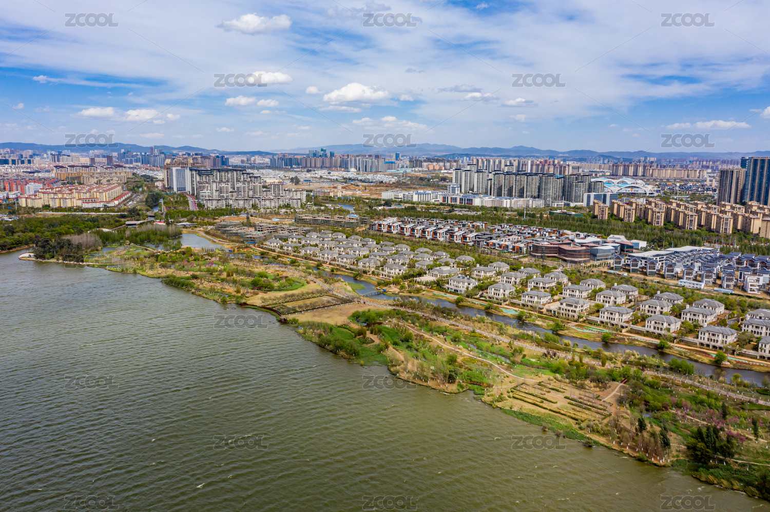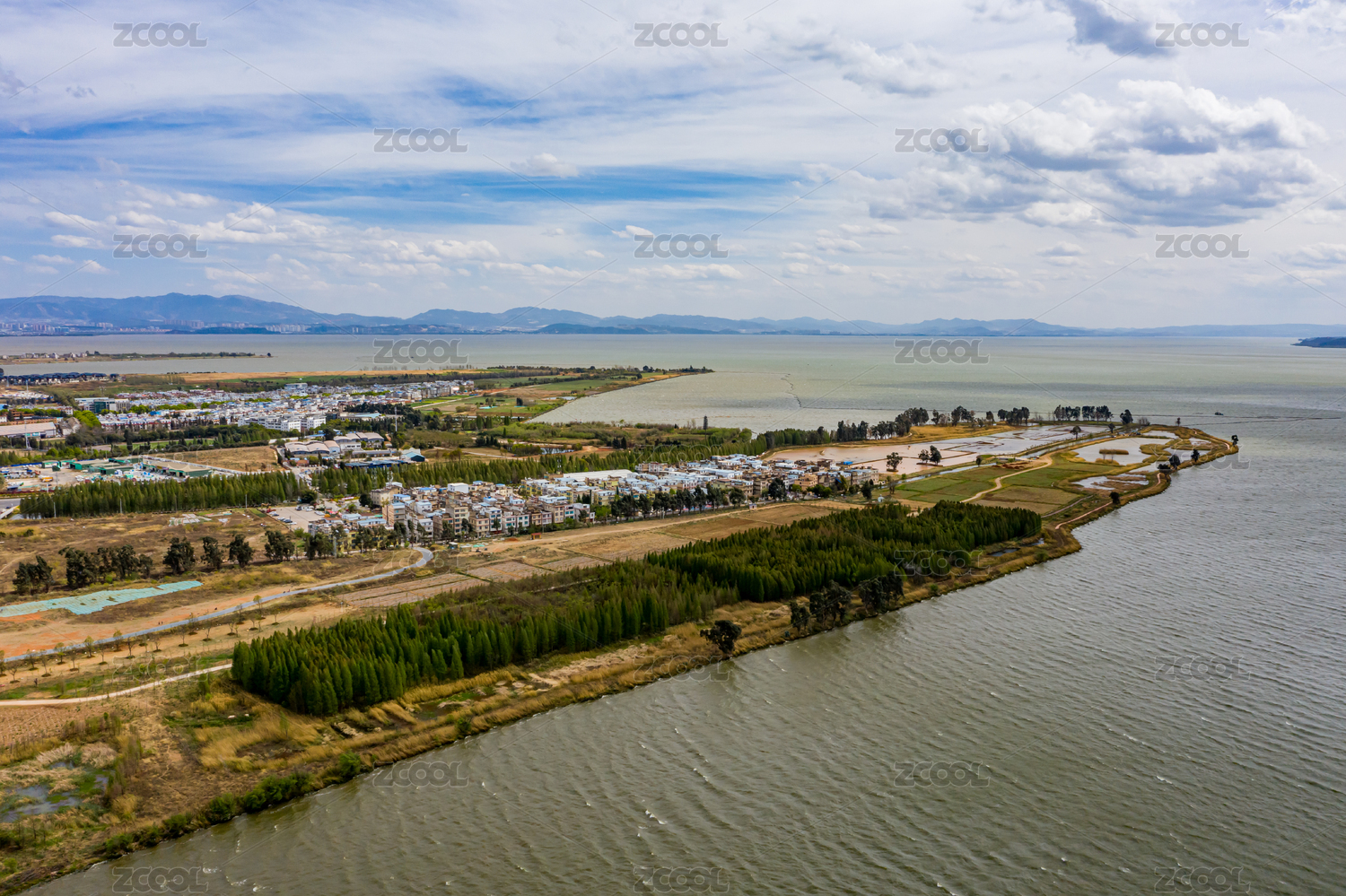 航拍云南昆明滇池星海半島濕地公園生態(tài)自然