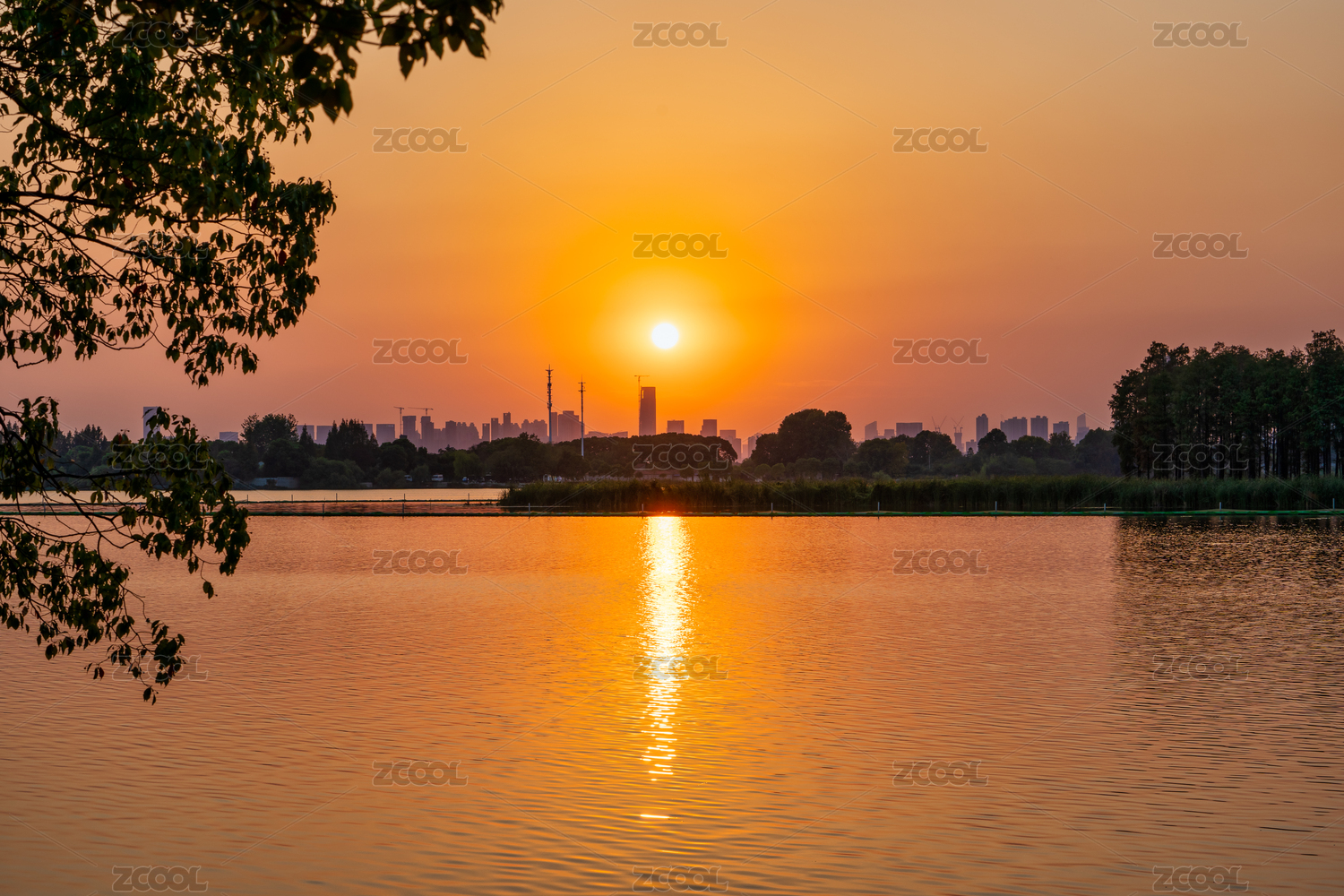中國(guó)湖北武漢東湖落雁島的日落