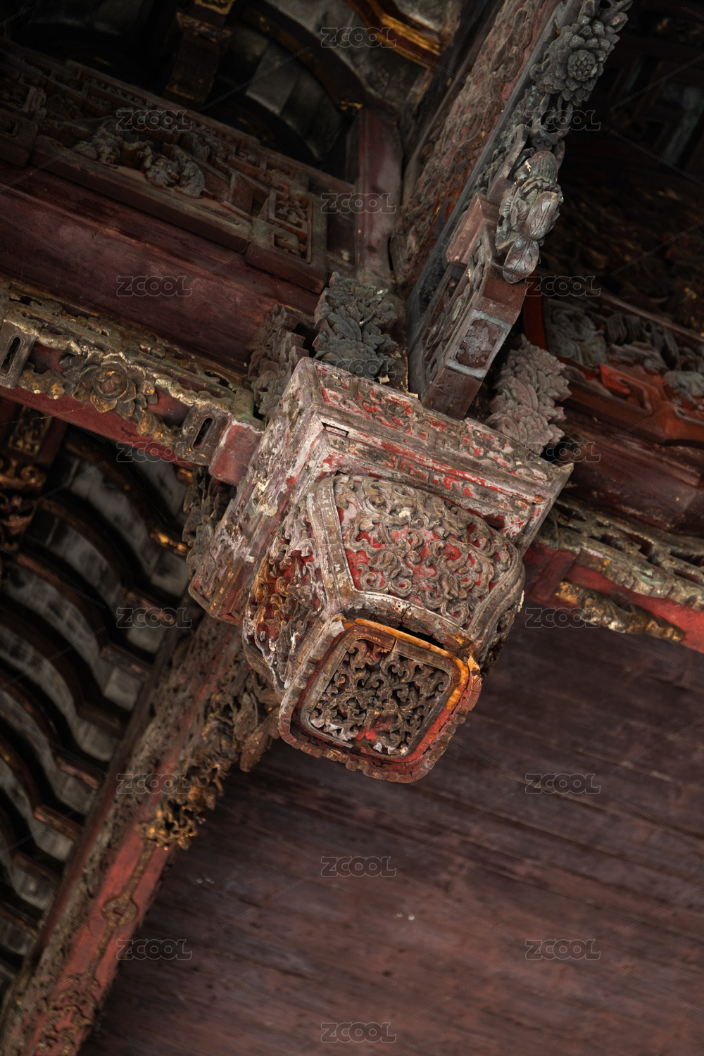 中國浙江紹興嵊州城隍廟的木雕牛腿構(gòu)件