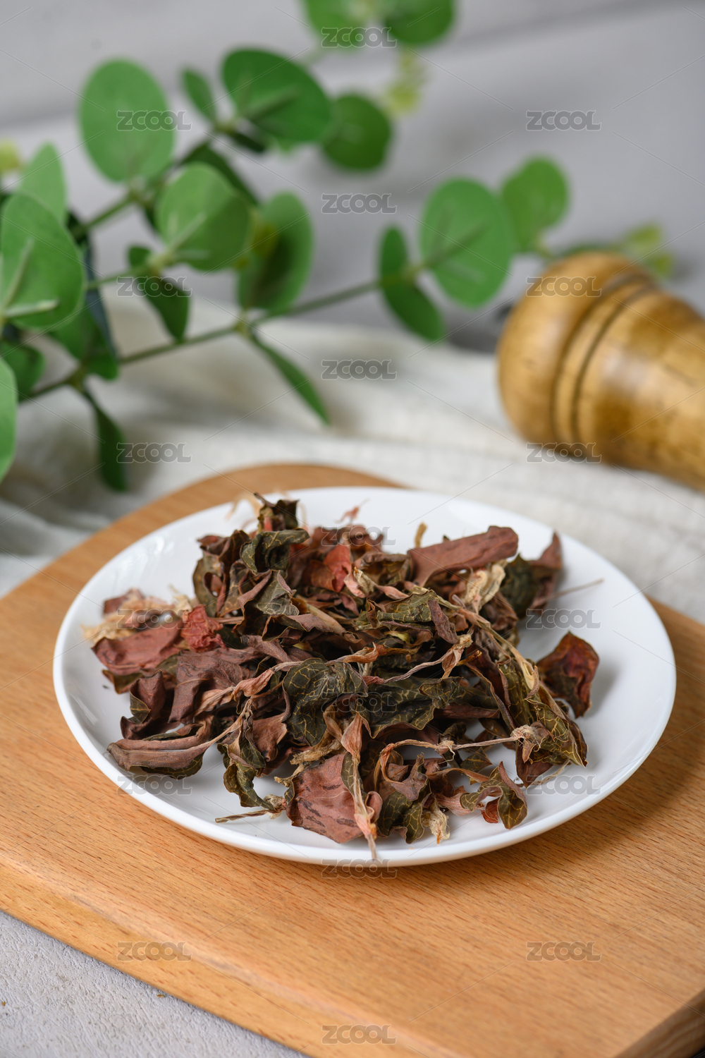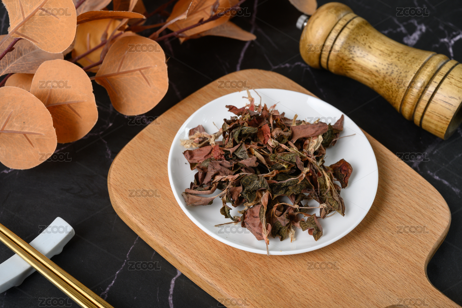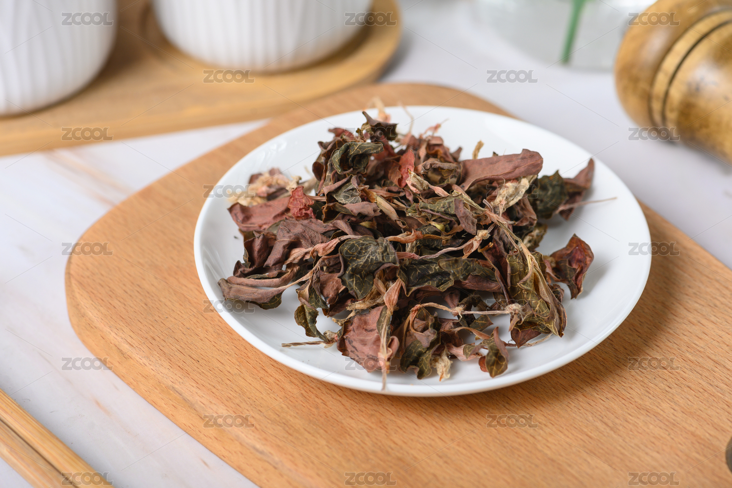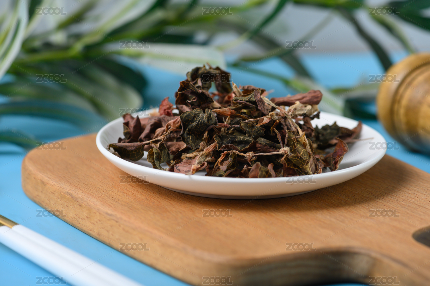 桌面上的盤子里的干爽的金線蓮