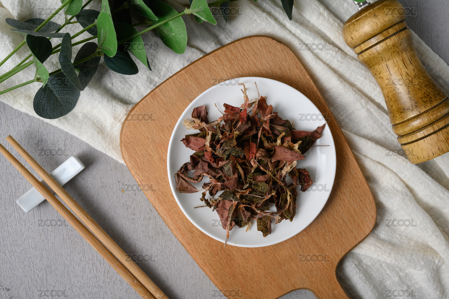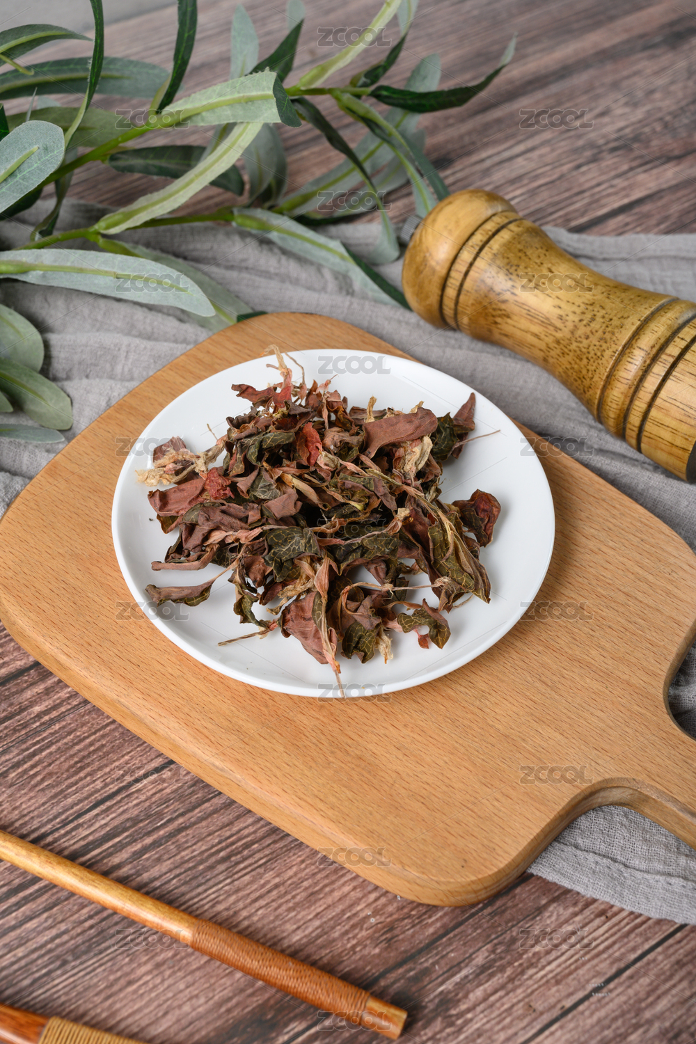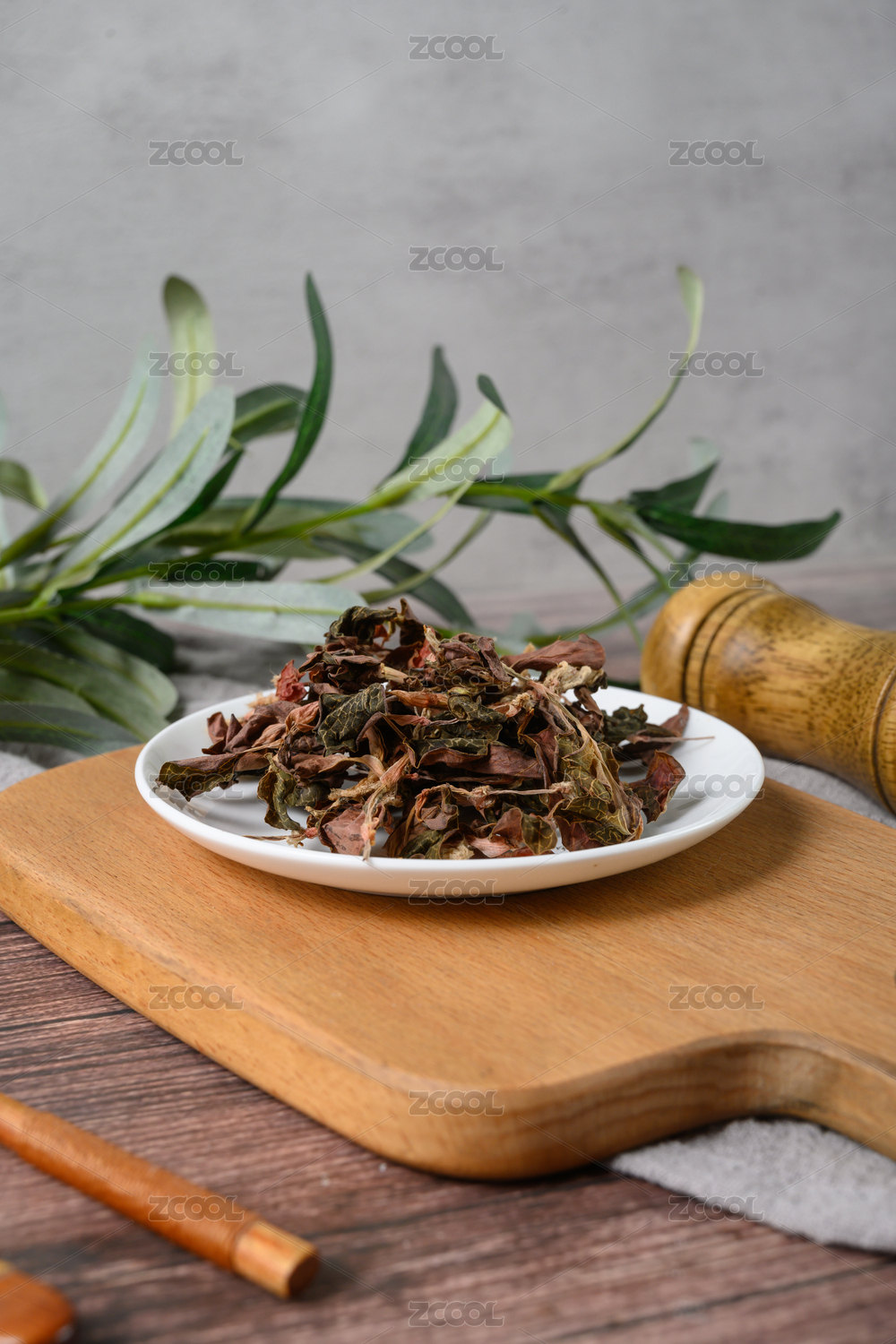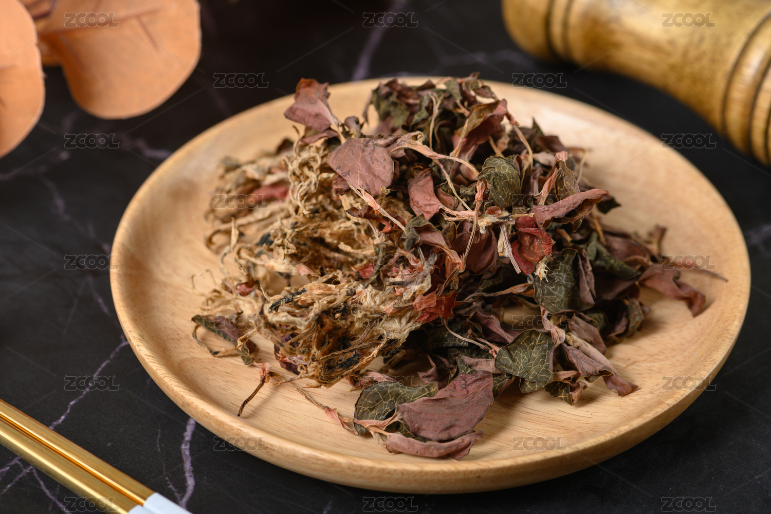 桌面上的盤子里的干爽的金線蓮