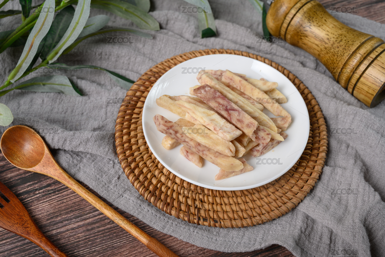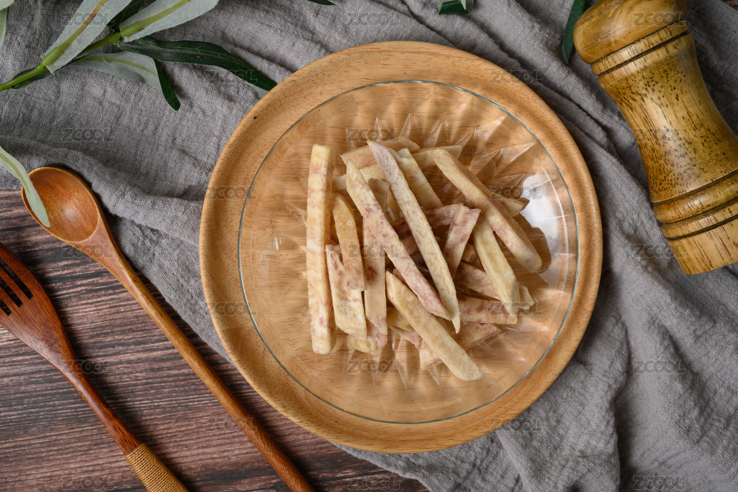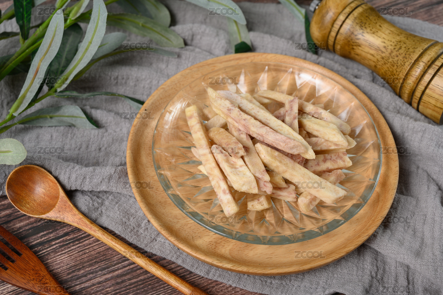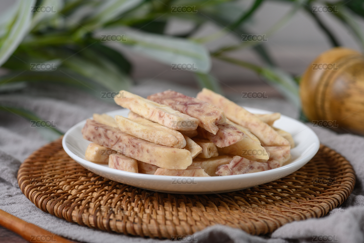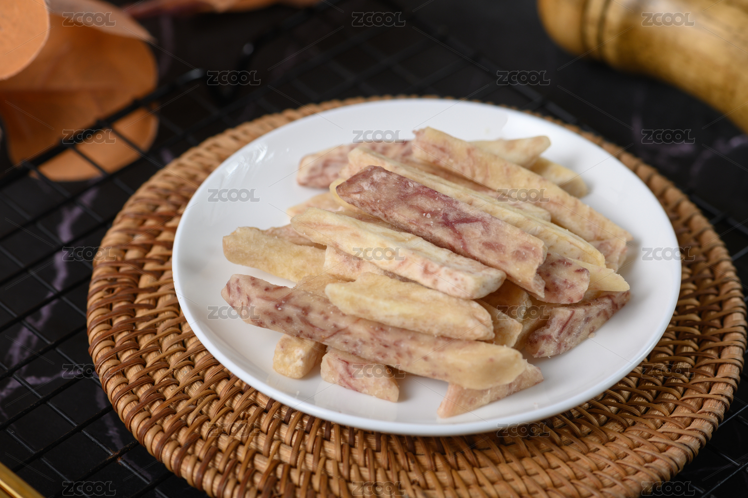 桌面上的盤子里的美味可口的芋頭條