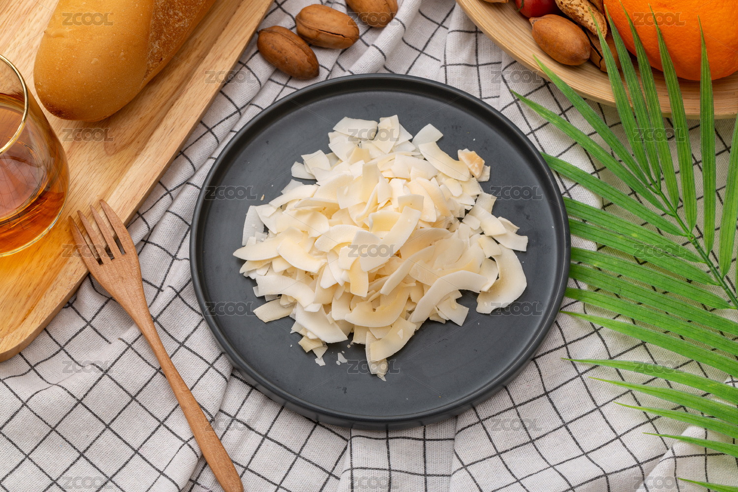 盤子里的椰子脆片