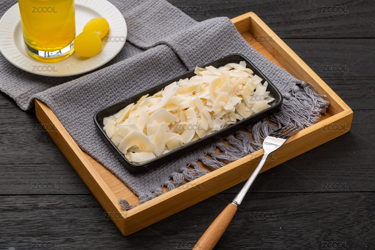 裝在長盤子里的椰子脆片