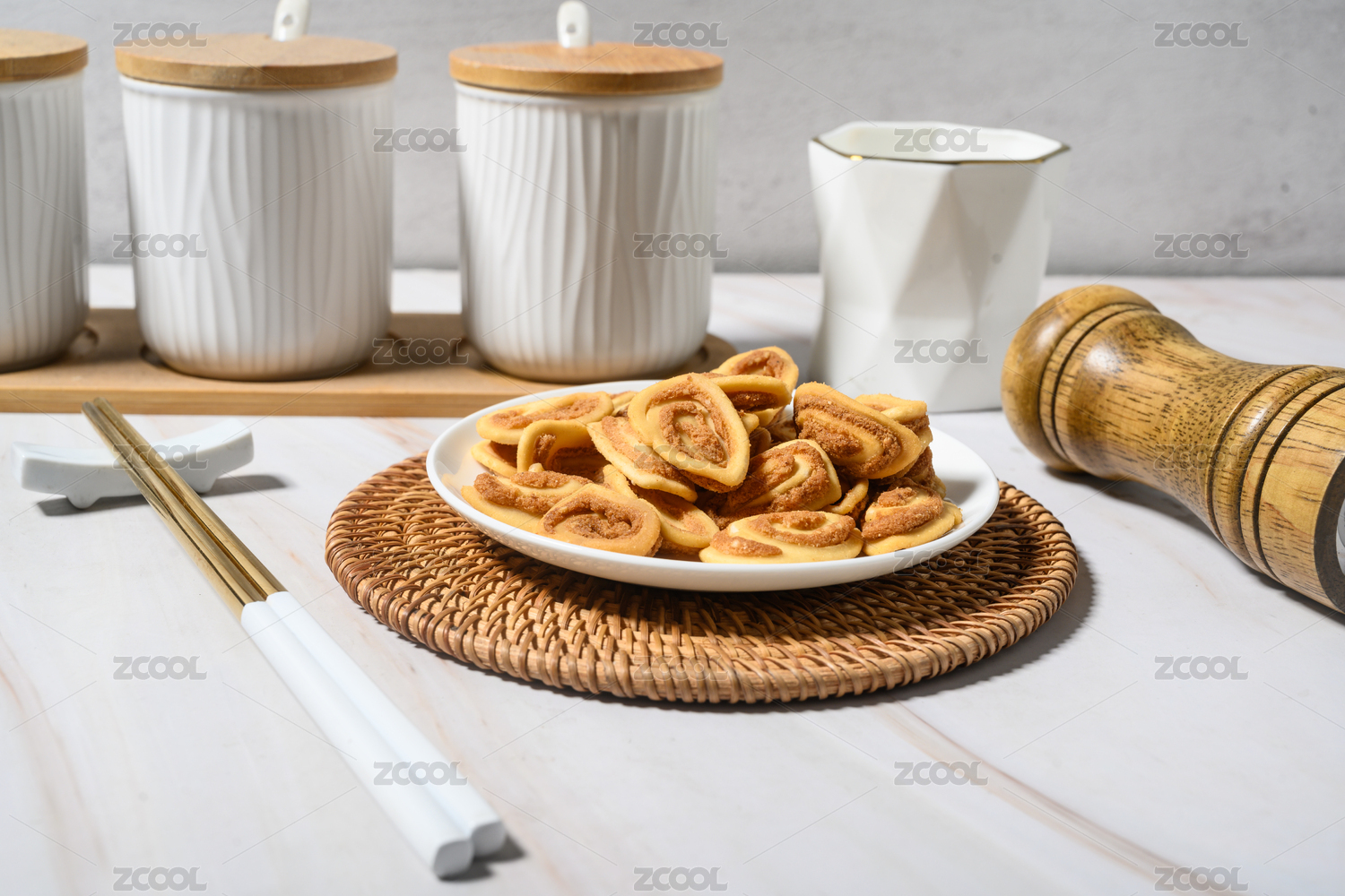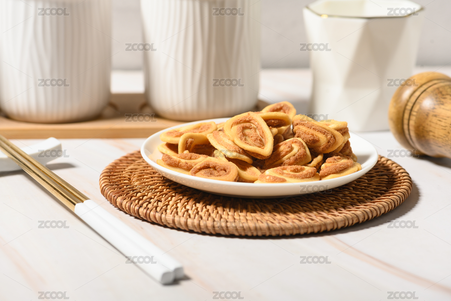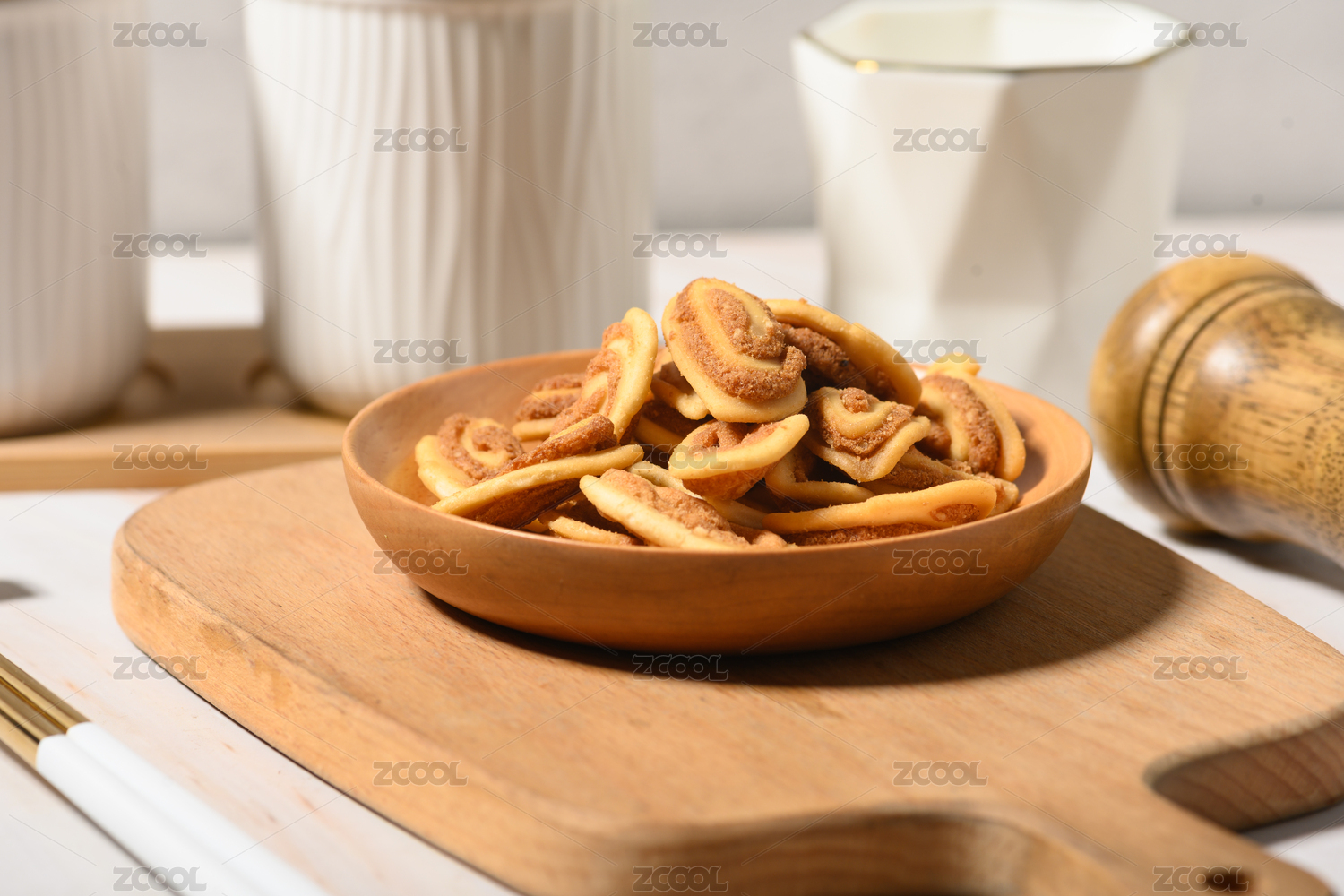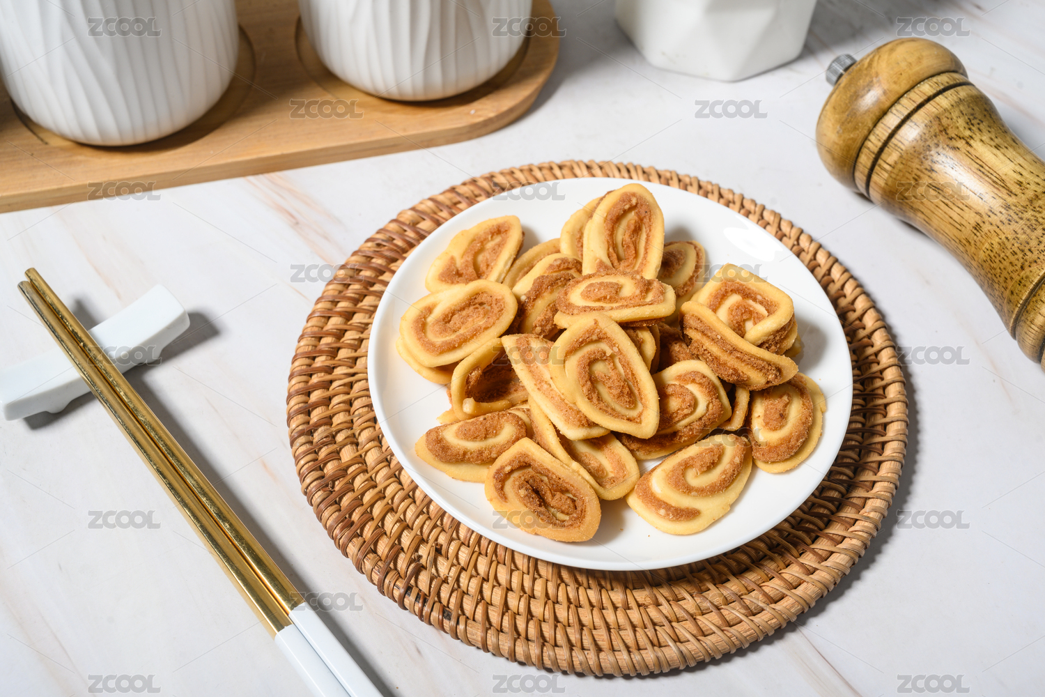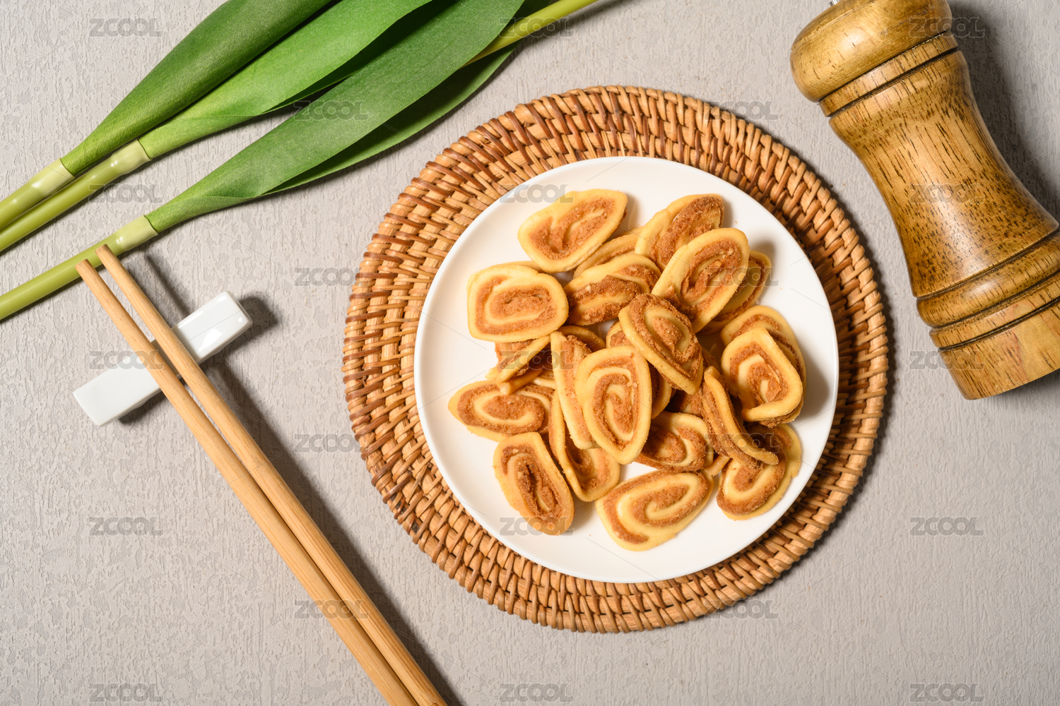 桌面上的盤子里的美味可口的貓耳朵