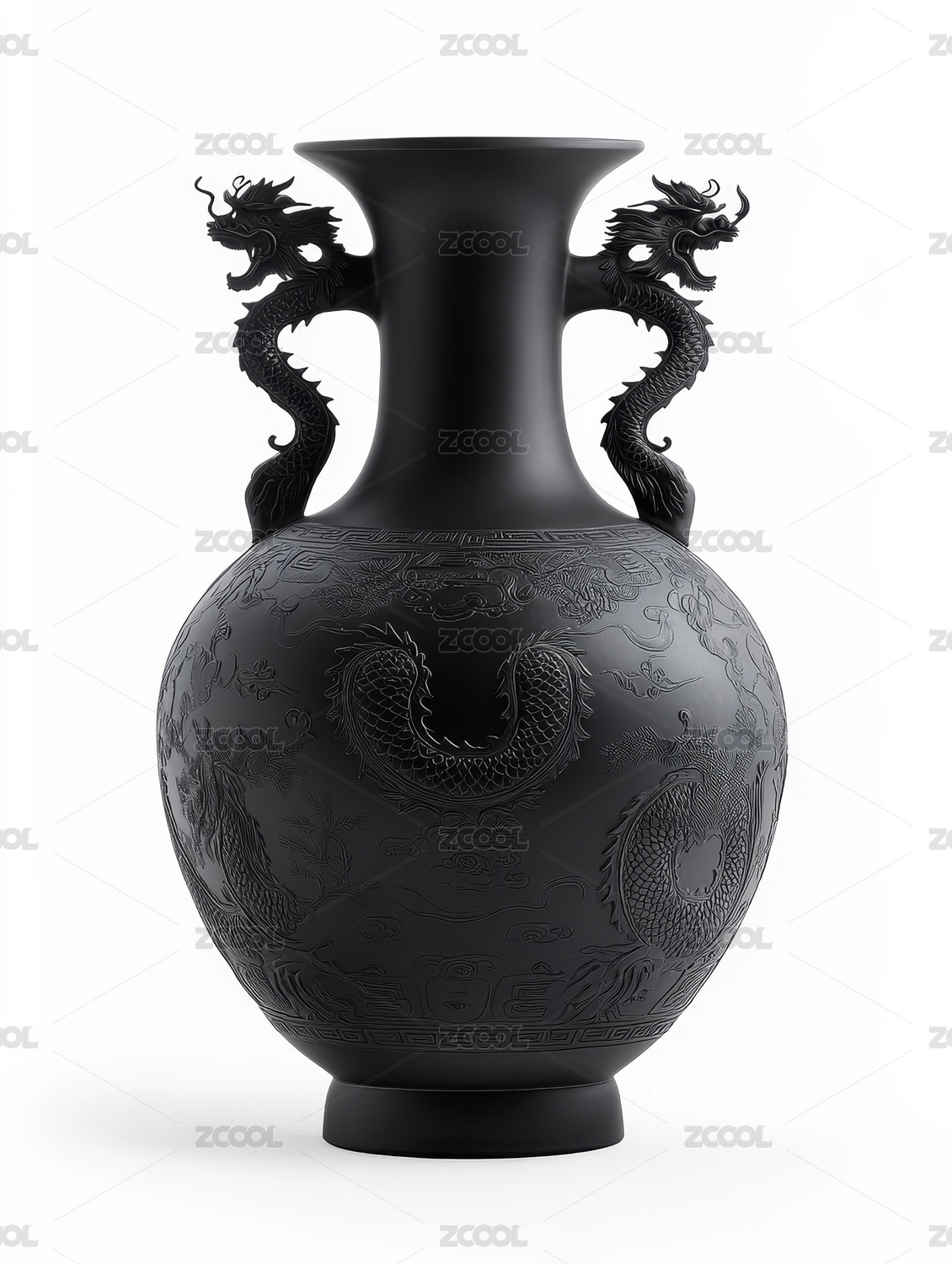 黑釉龍耳瓶特寫圖