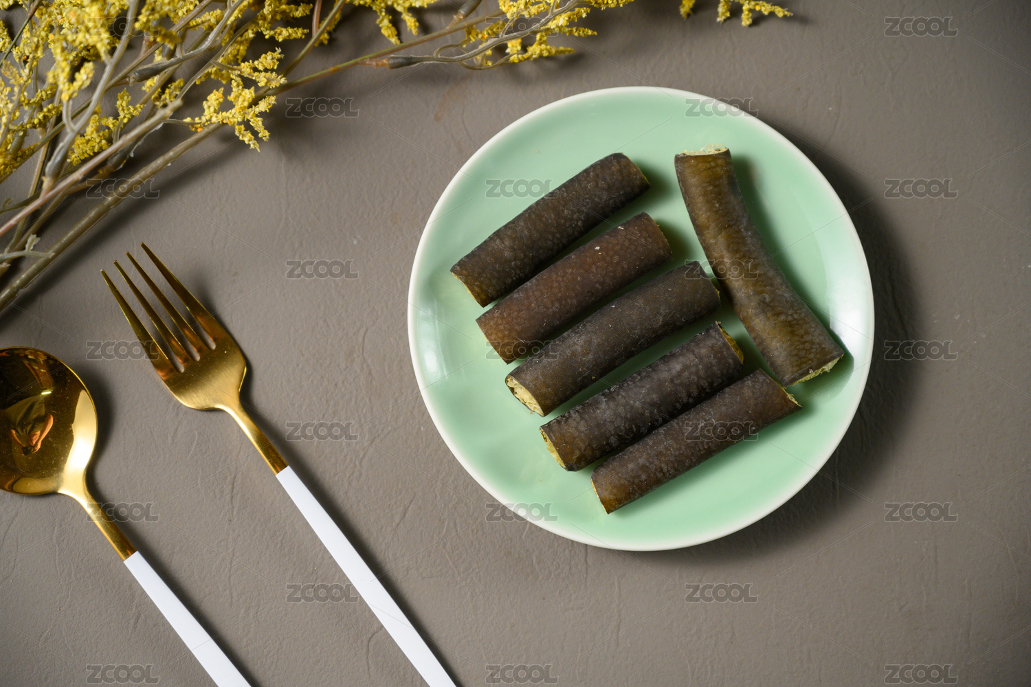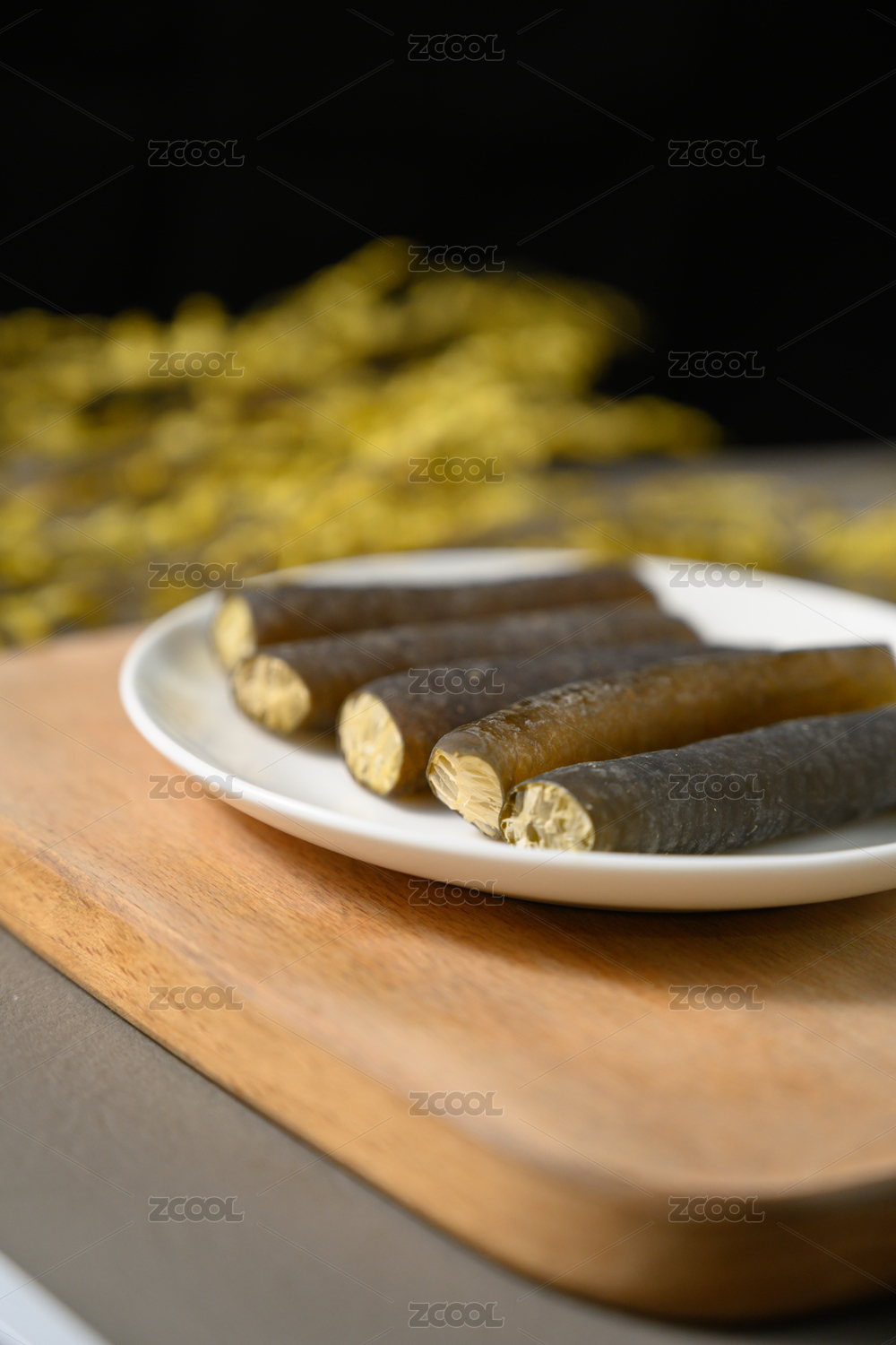桌面上的盤子里的美味可口的海筍