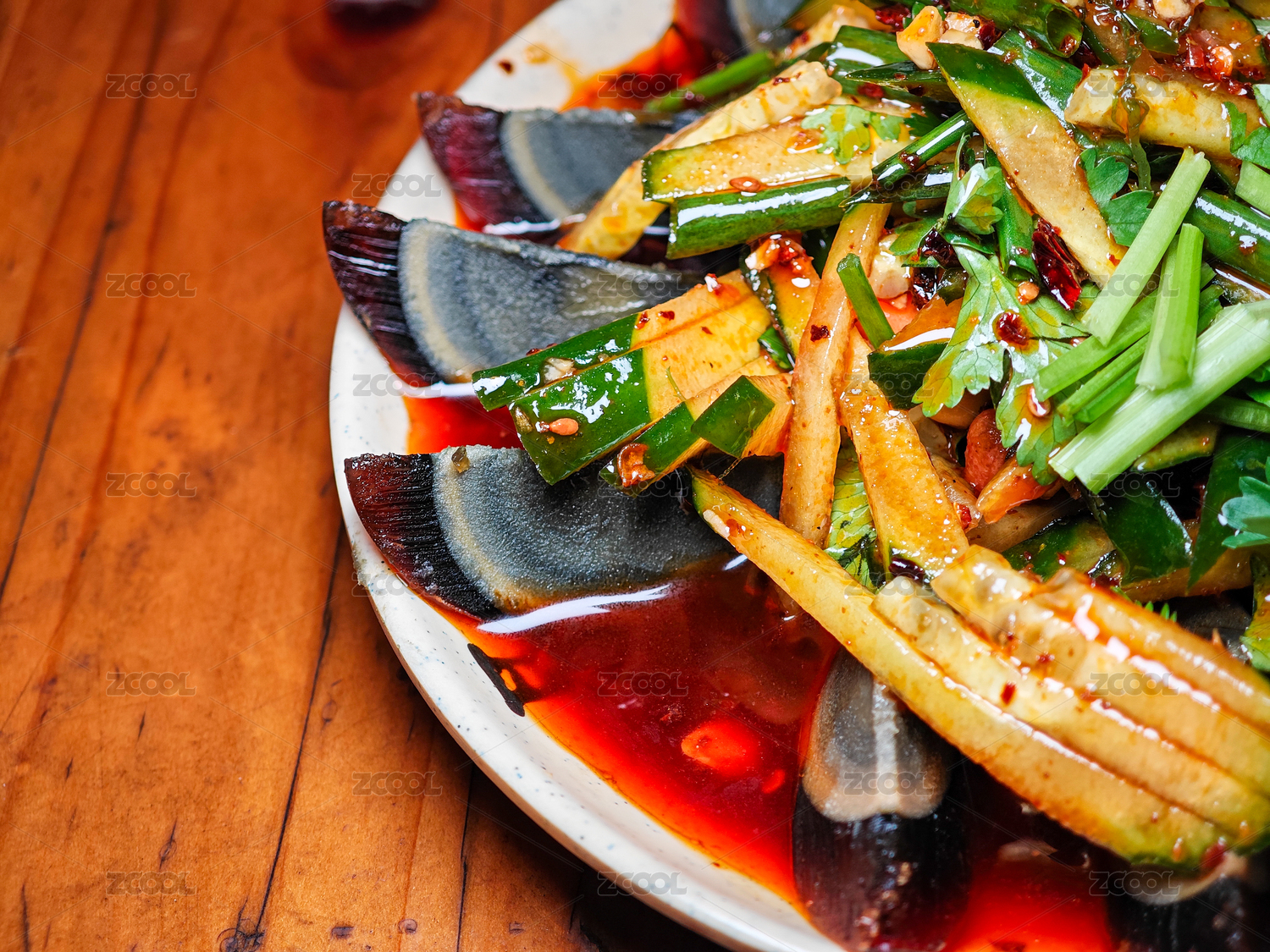 桌面上的盤子里的美味可口的涼拌青瓜皮