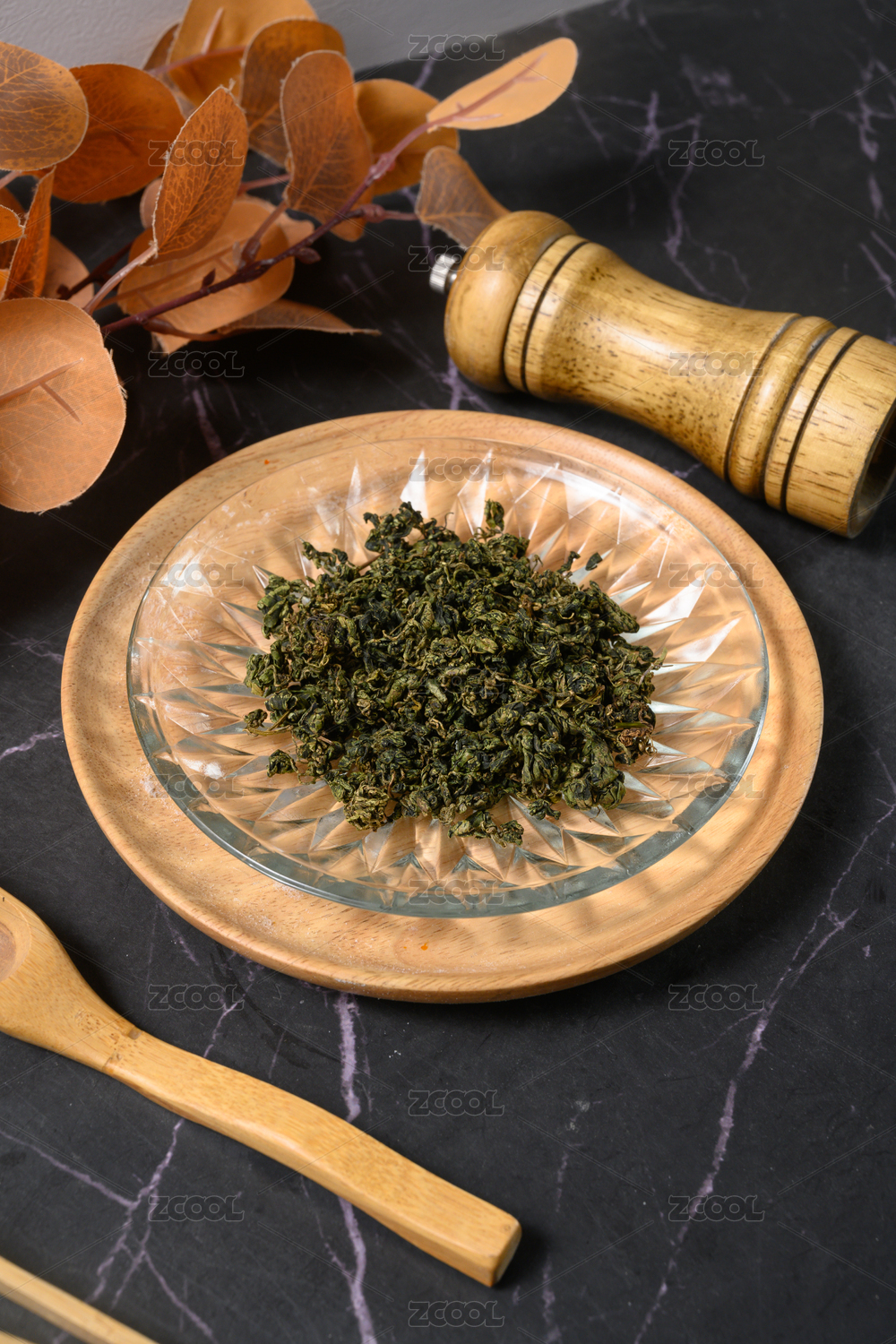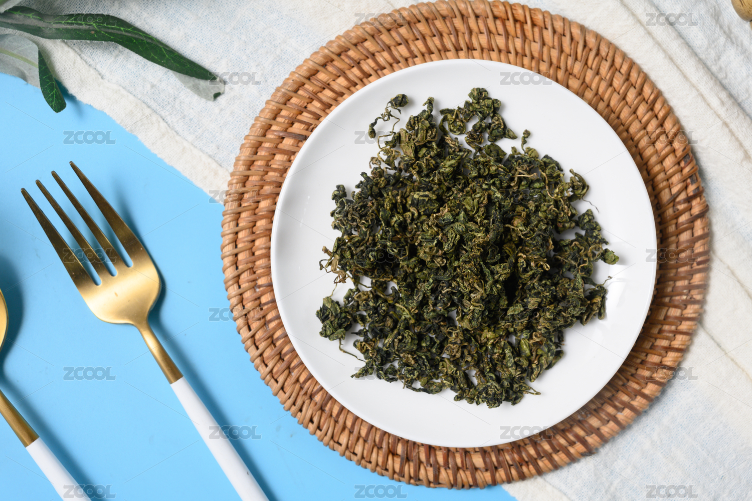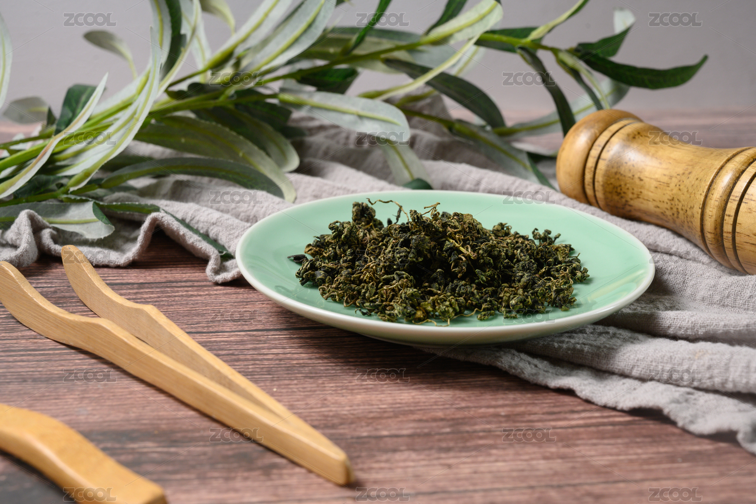 桌面上的盤子里的干爽的絞股藍(lán)