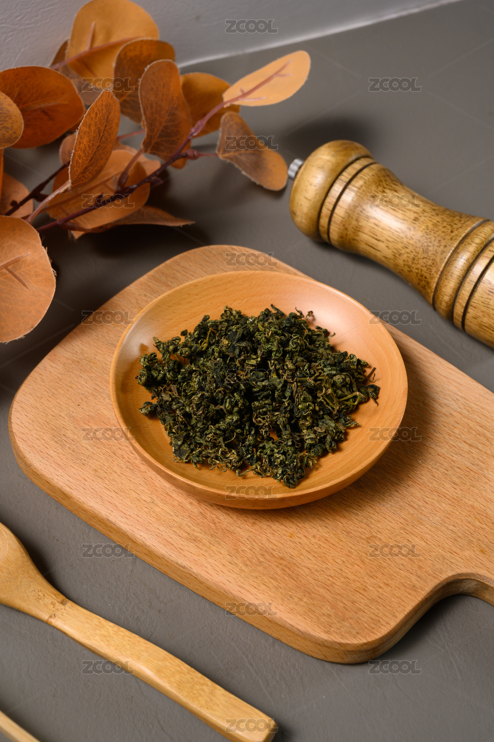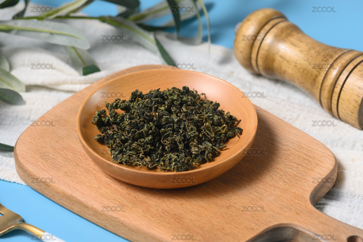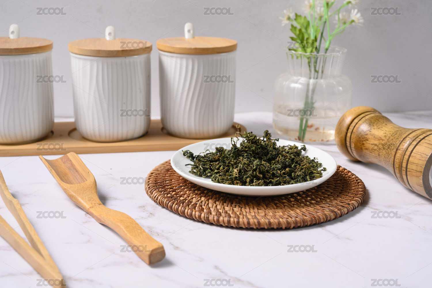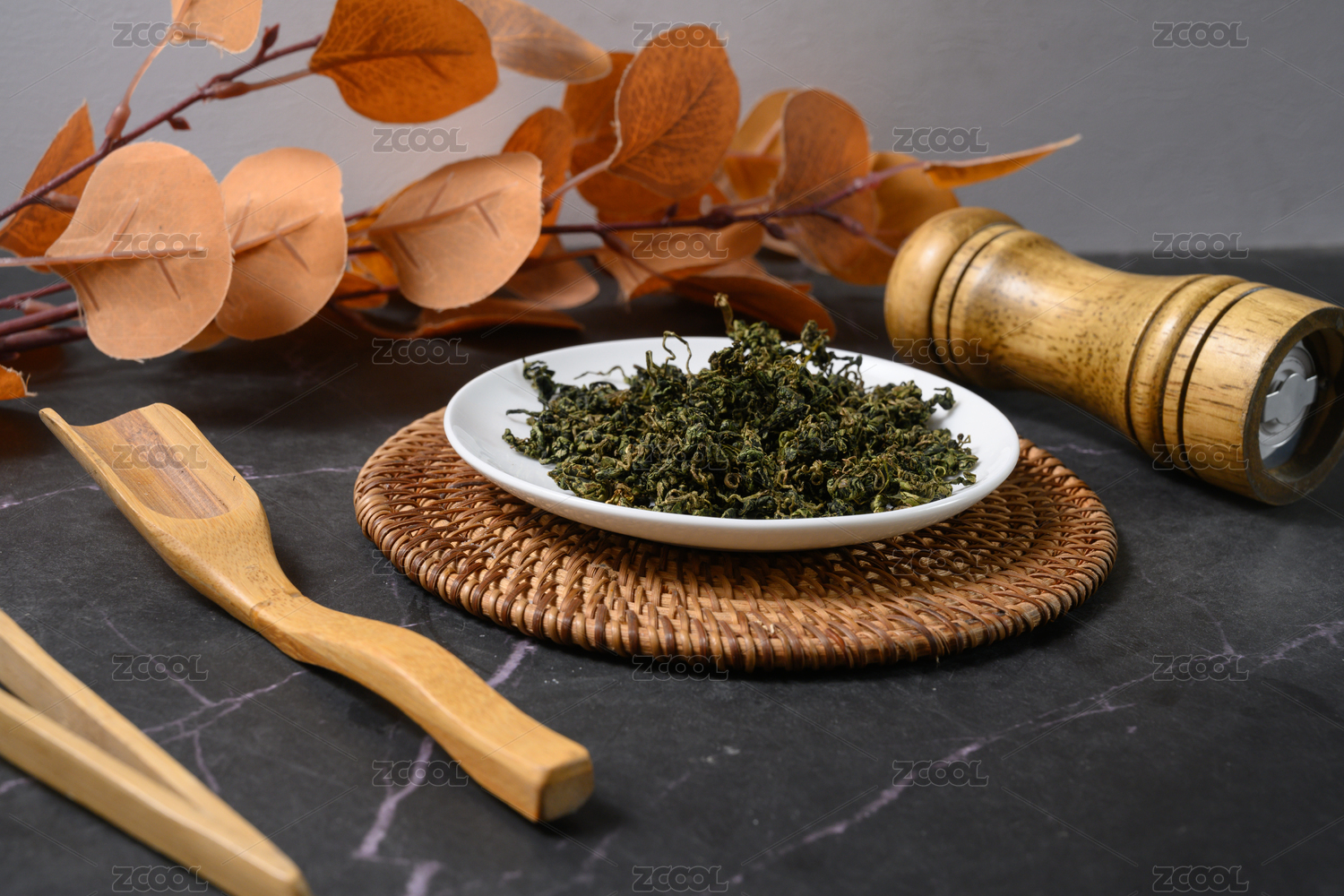 桌面上的盤子里的干爽的絞股藍(lán)
