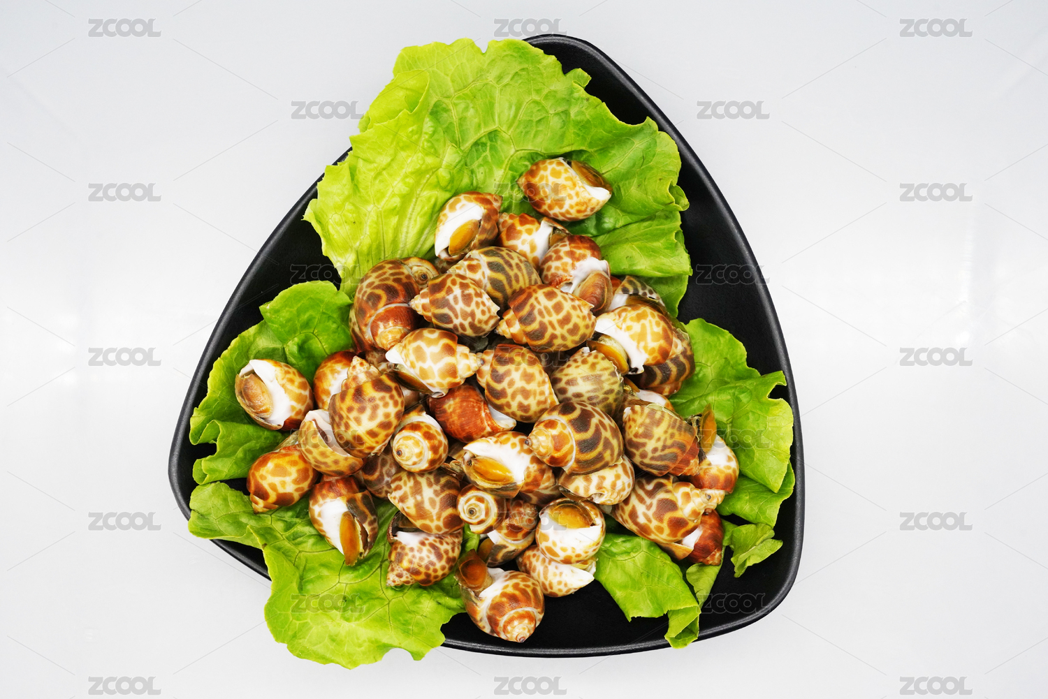 裝在白色色瓷盤里的水產(chǎn)花螺
