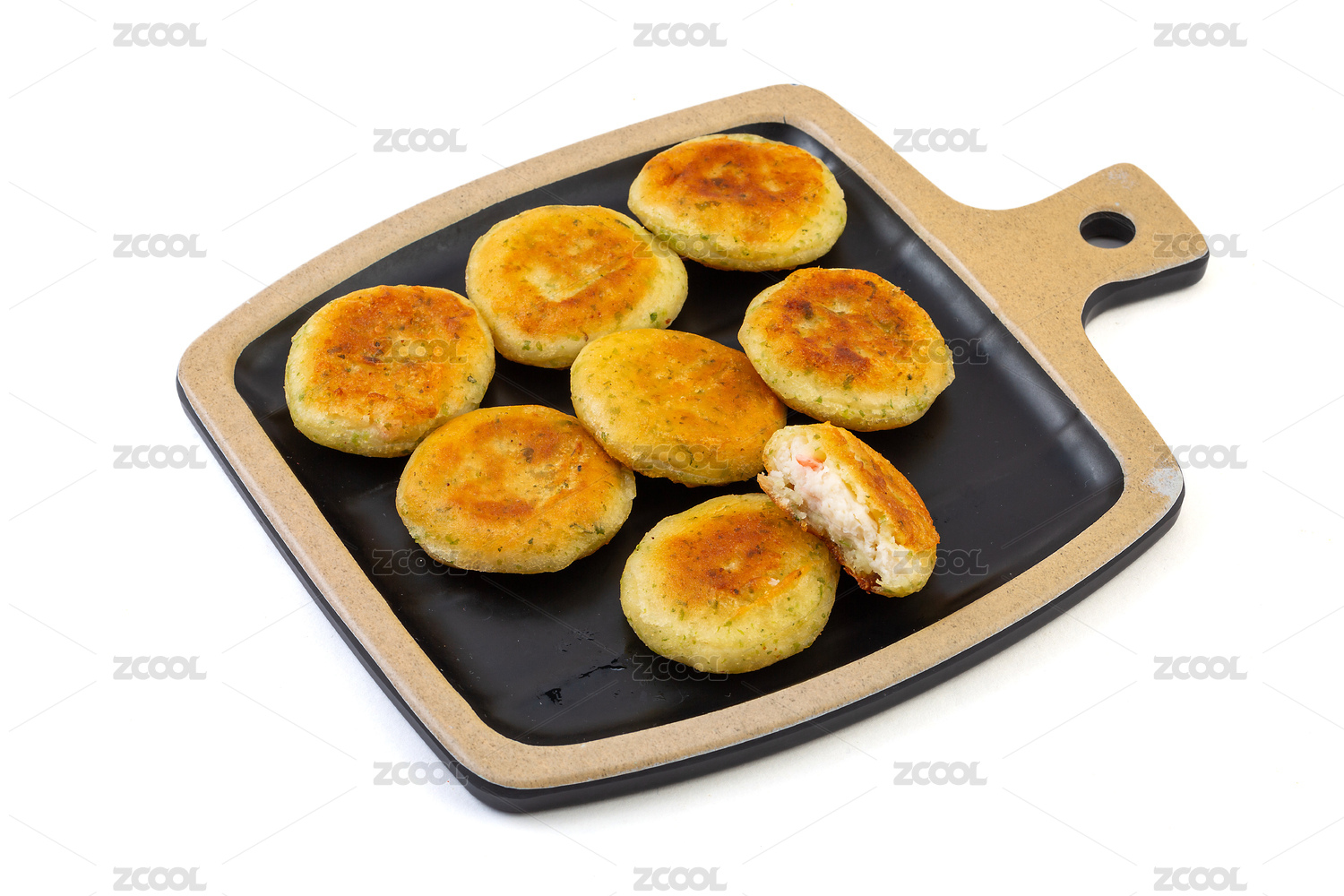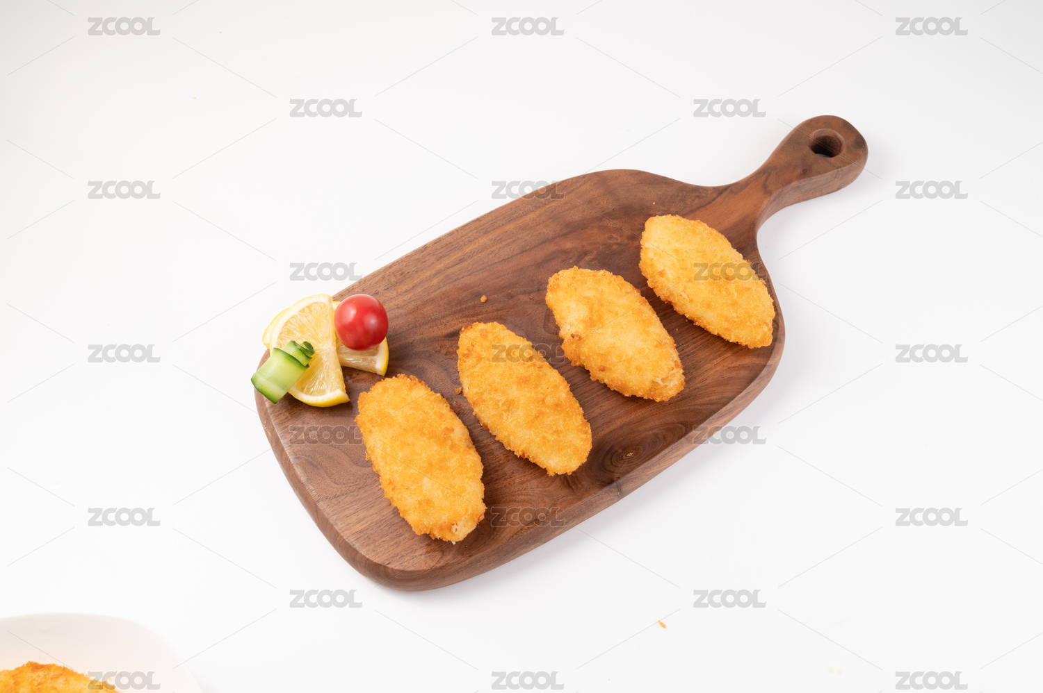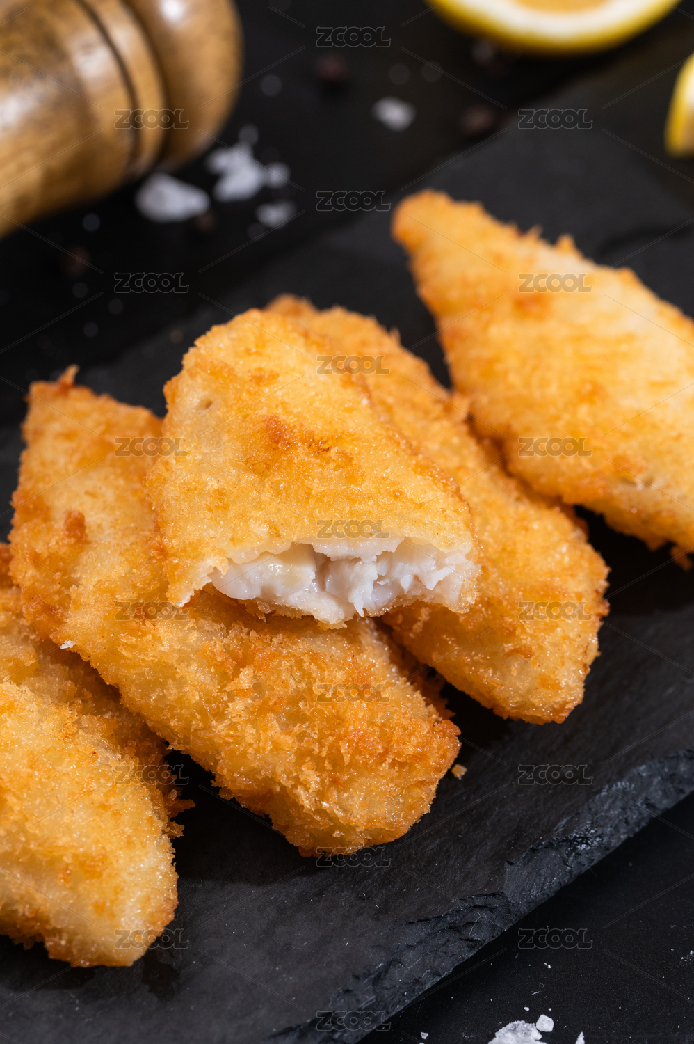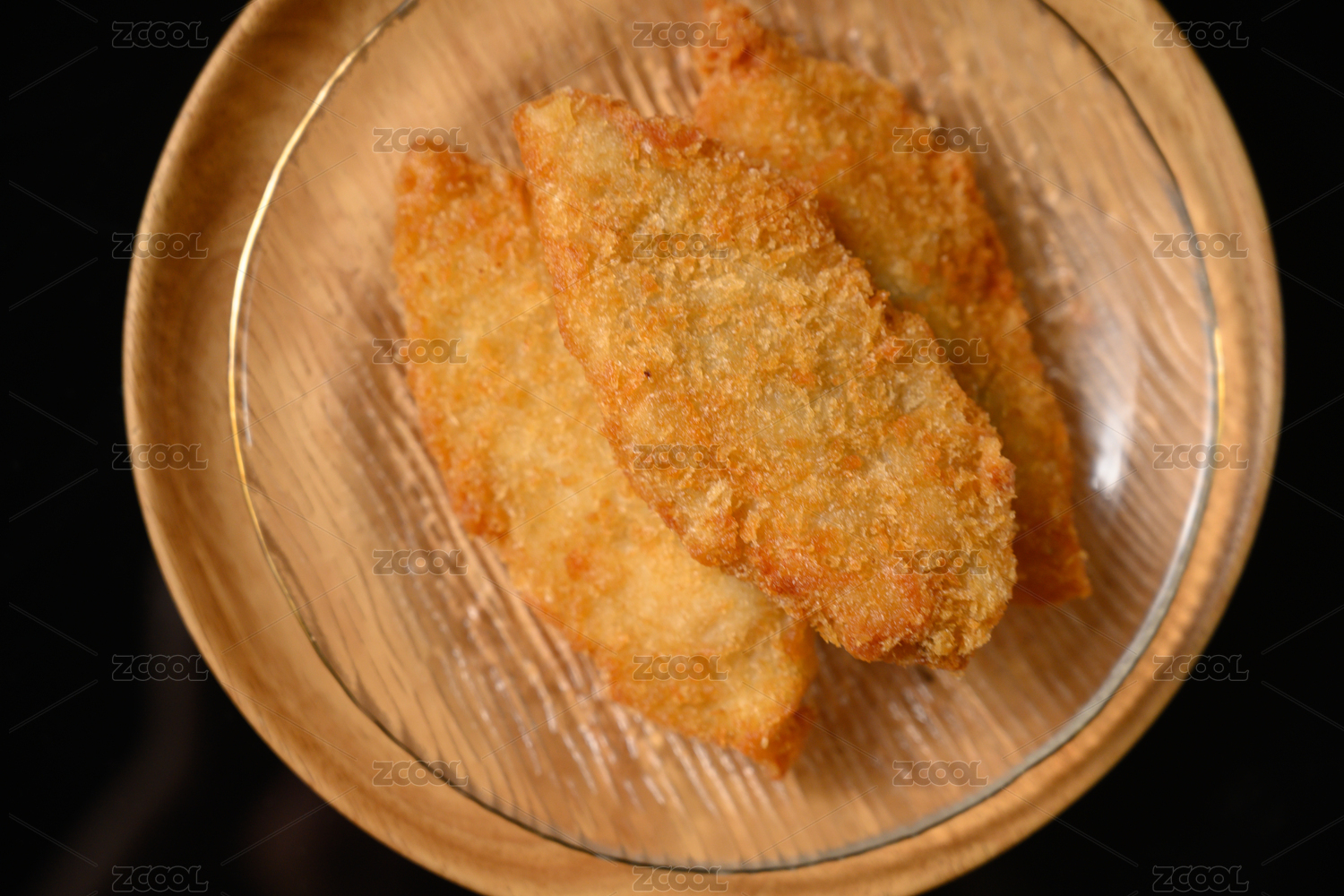 純色背景盤子里炸鱈魚的特寫鏡頭