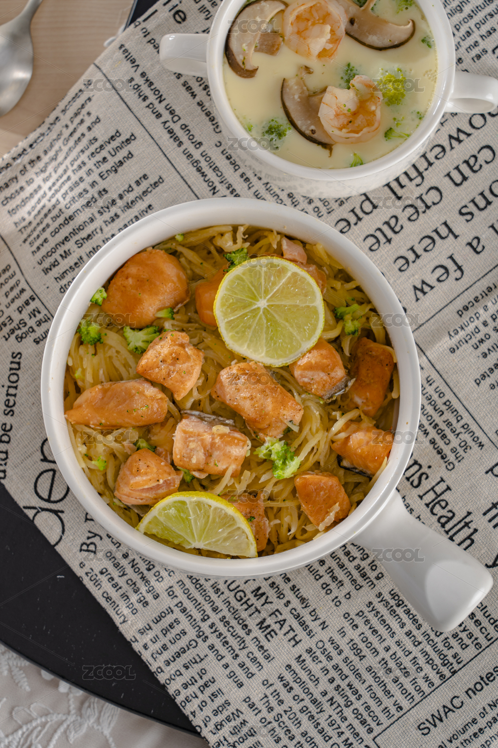 三文魚(yú)土豆絲蝦仁菌菇燉蛋套餐