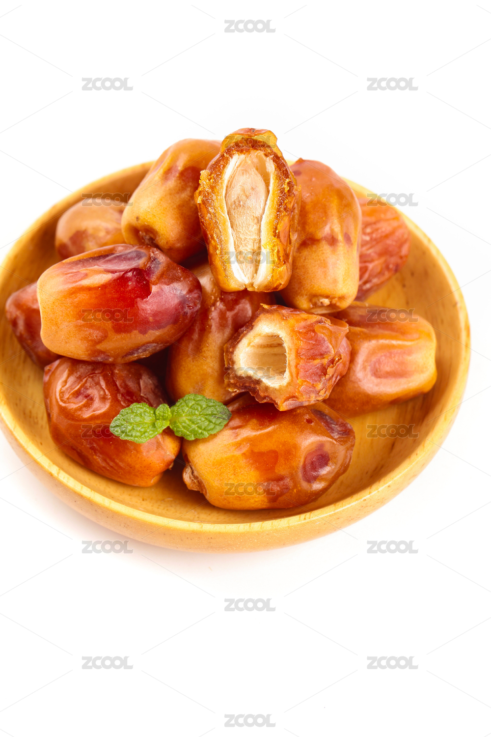 白底上放著一個(gè)切開的伊拉克黃椰棗
