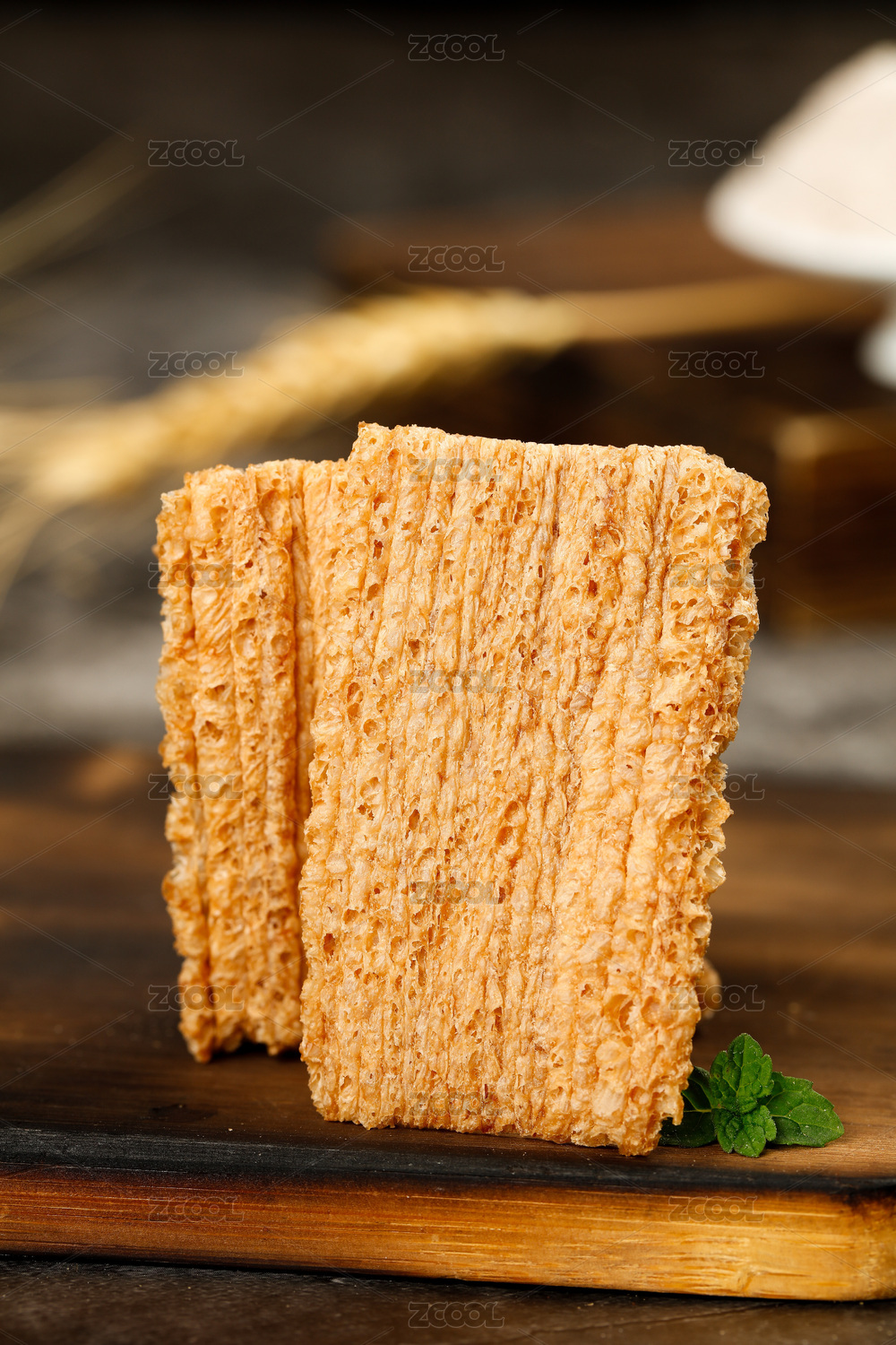 木底上放著兩塊三角麥酥