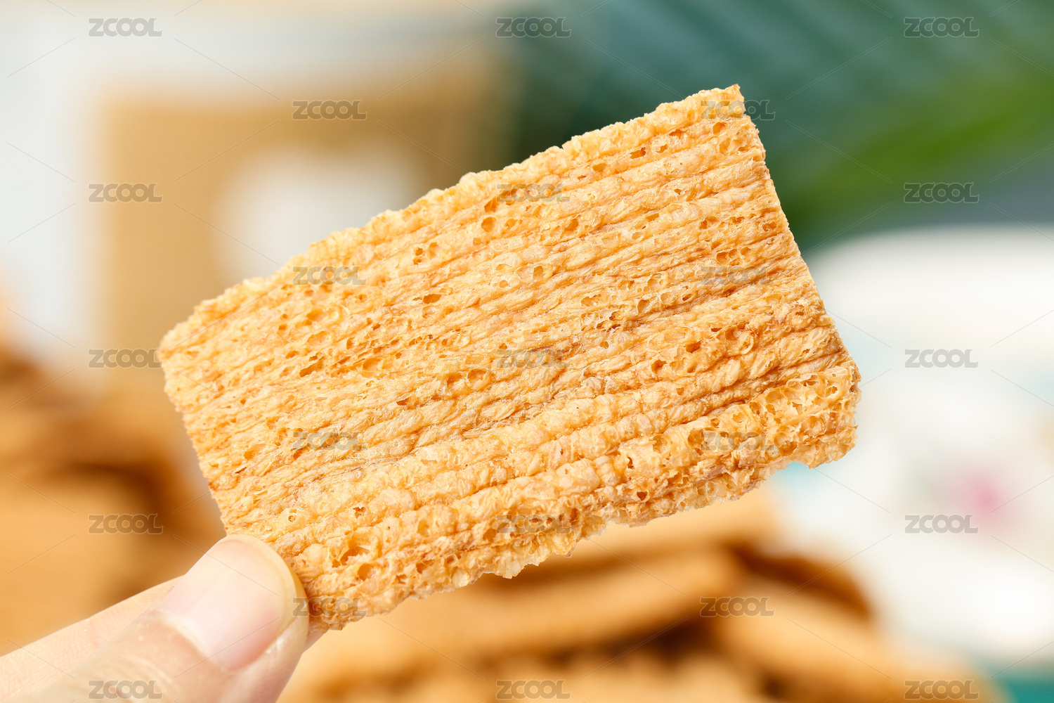 手上拿著一塊掰段的蕎麥餅干