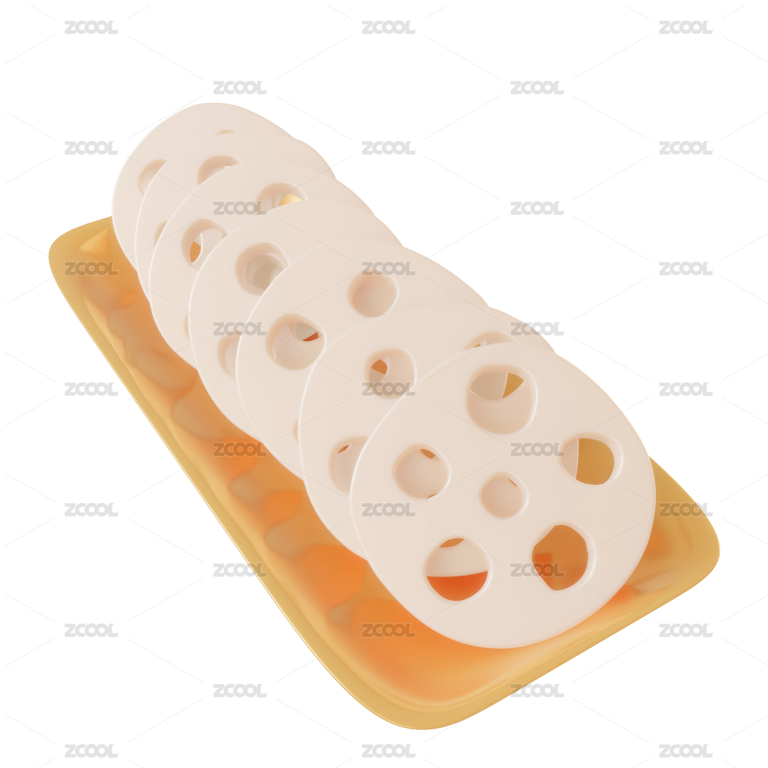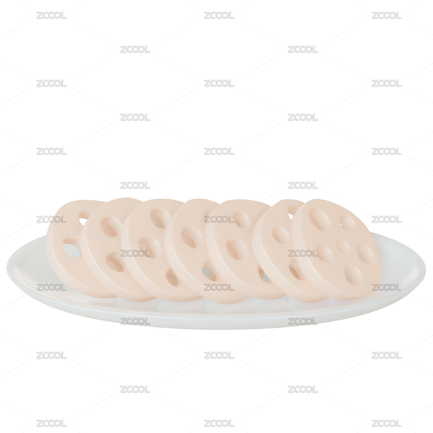 一個白色磁盤裝蓮藕片的火鍋食材3d元素