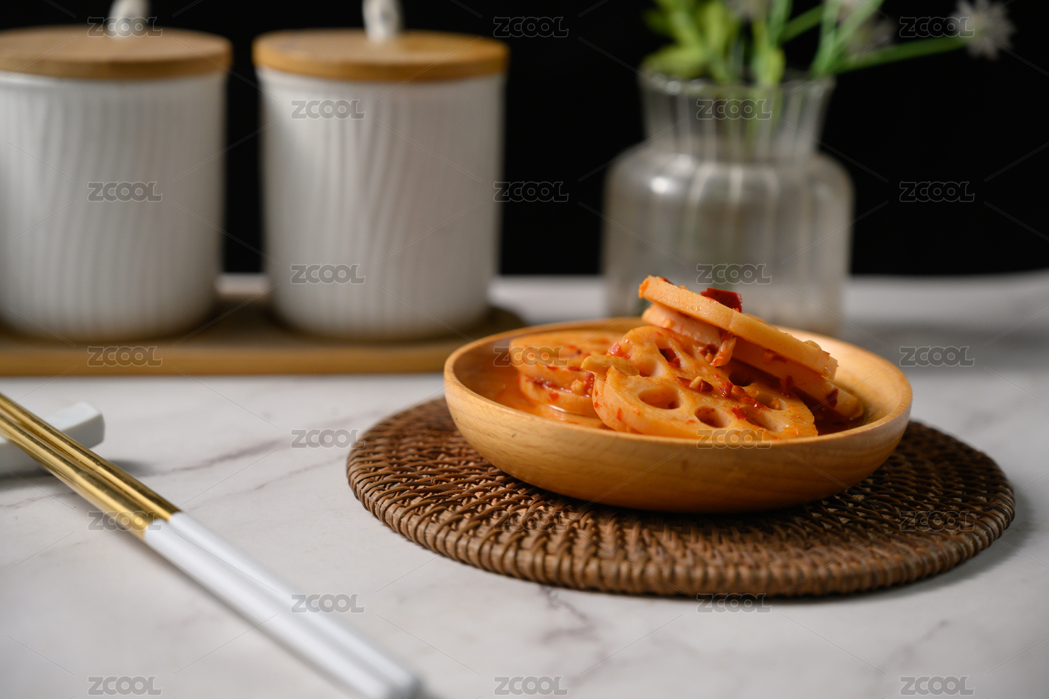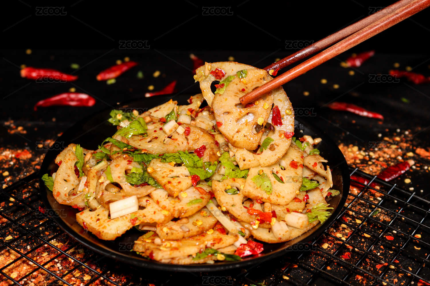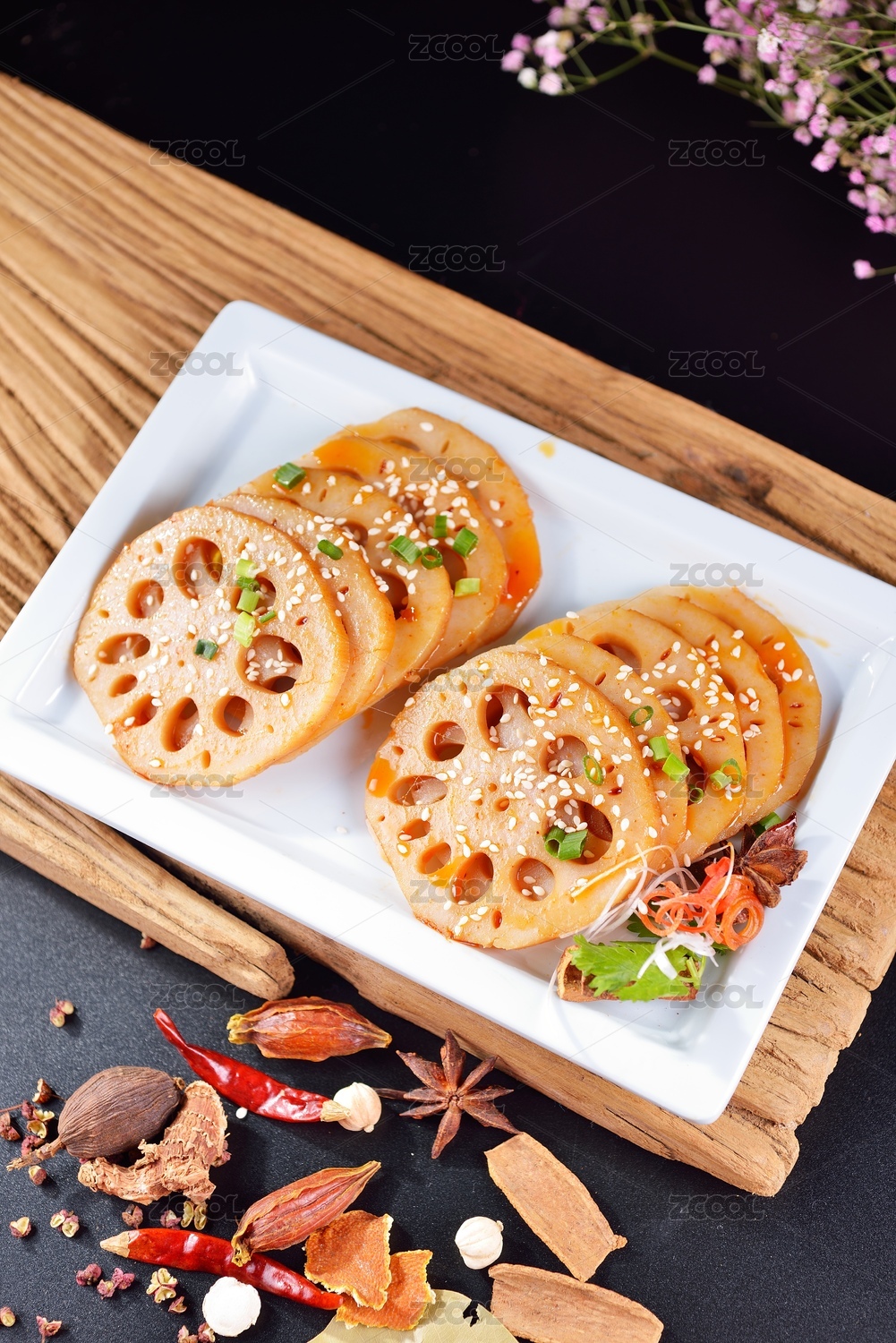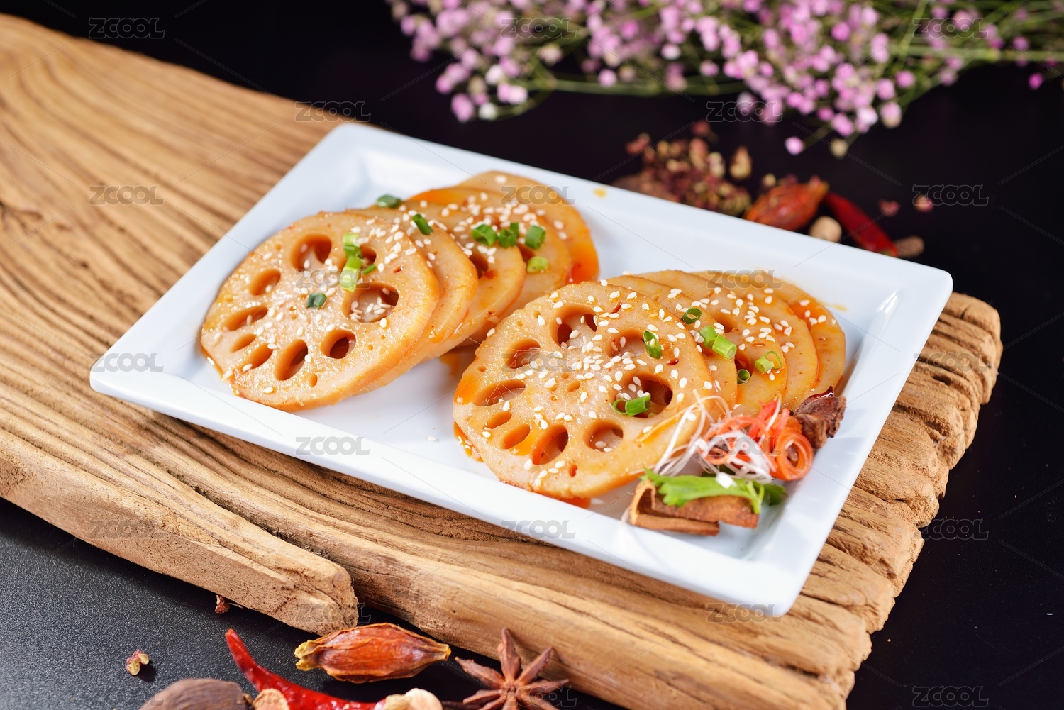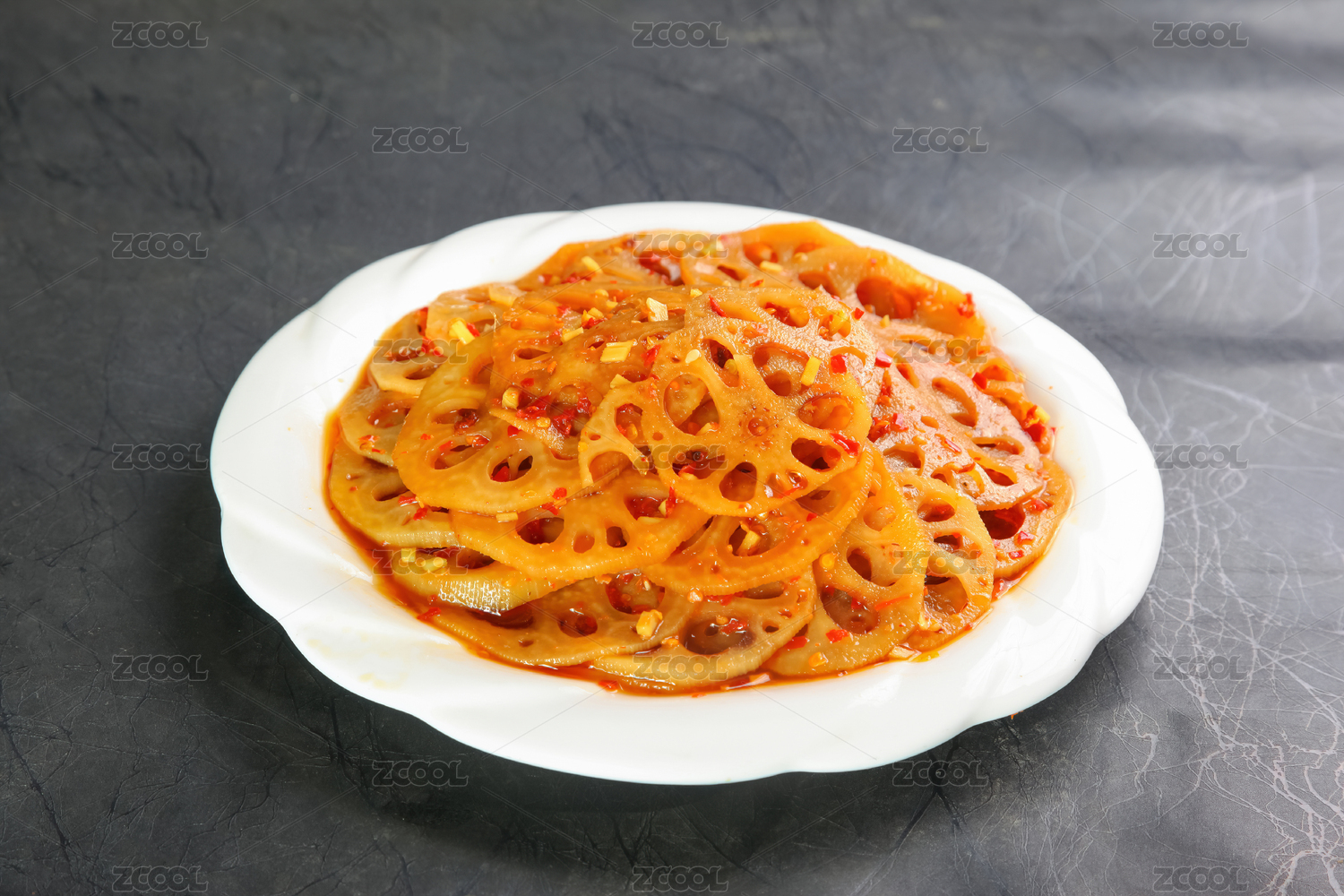 中式香辣藕片美食