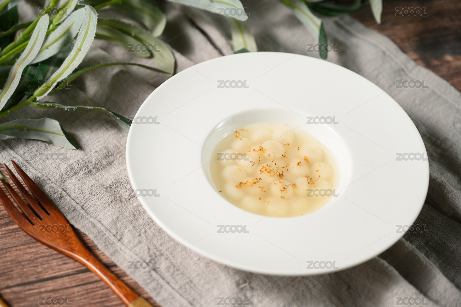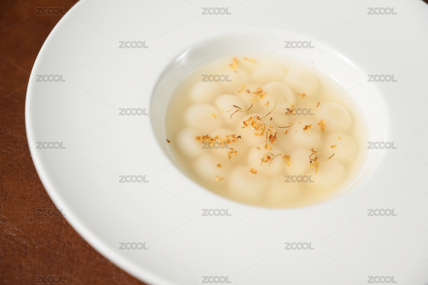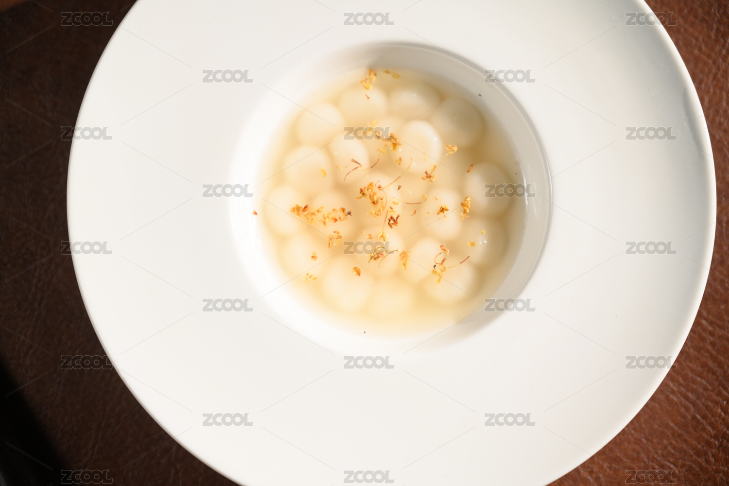 桌面上的盤子里的美味可口的酒釀丸子