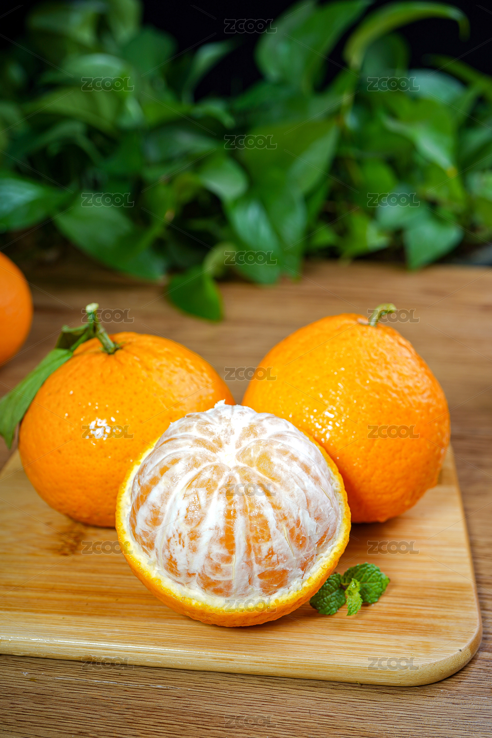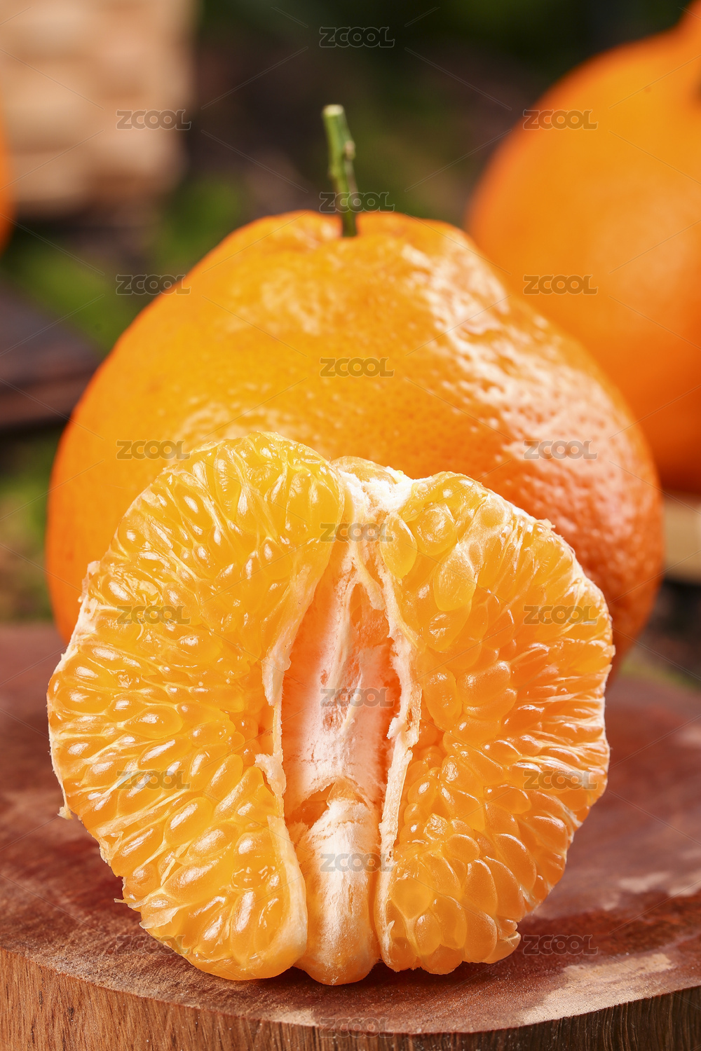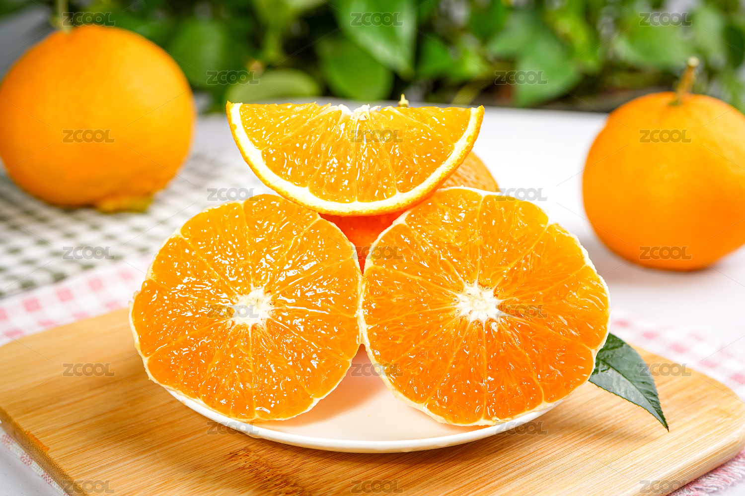 木板上放著一個(gè)四川春見(jiàn)耙耙柑和半邊果肉