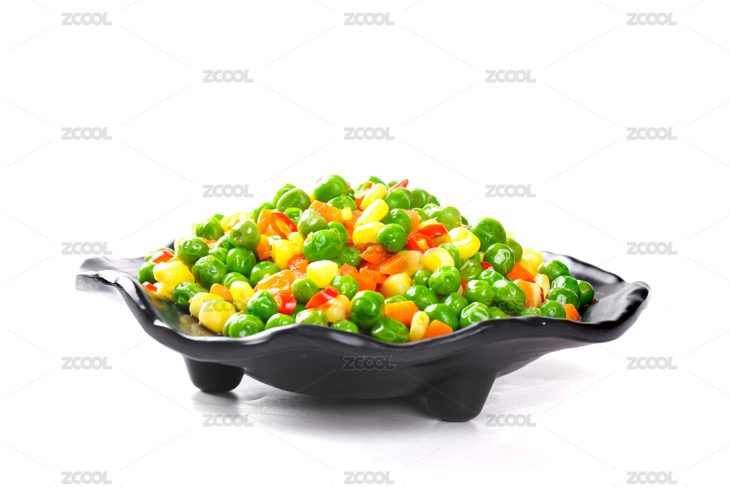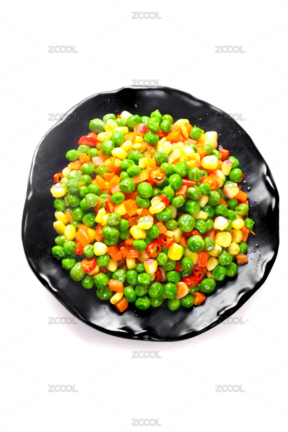 白底上放著一盤素炒豌豆