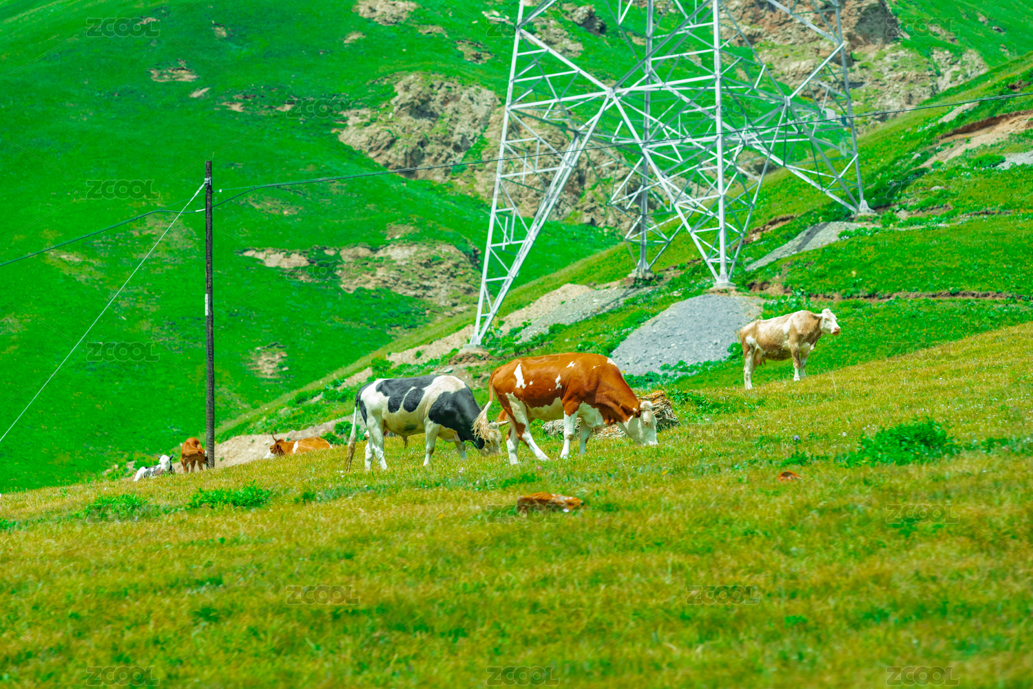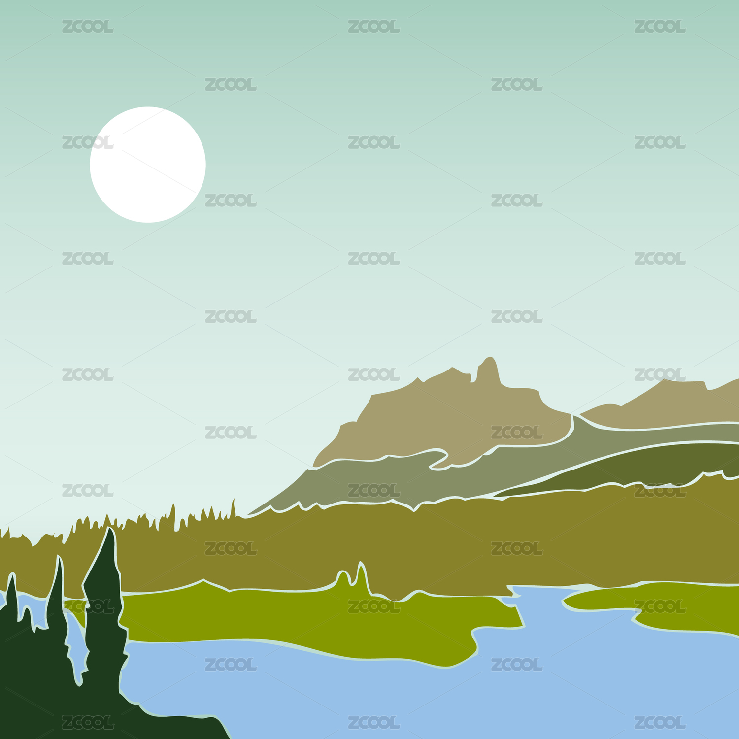 阿爾卑斯山 新疆天山牧場 矢量插畫風(fēng)景