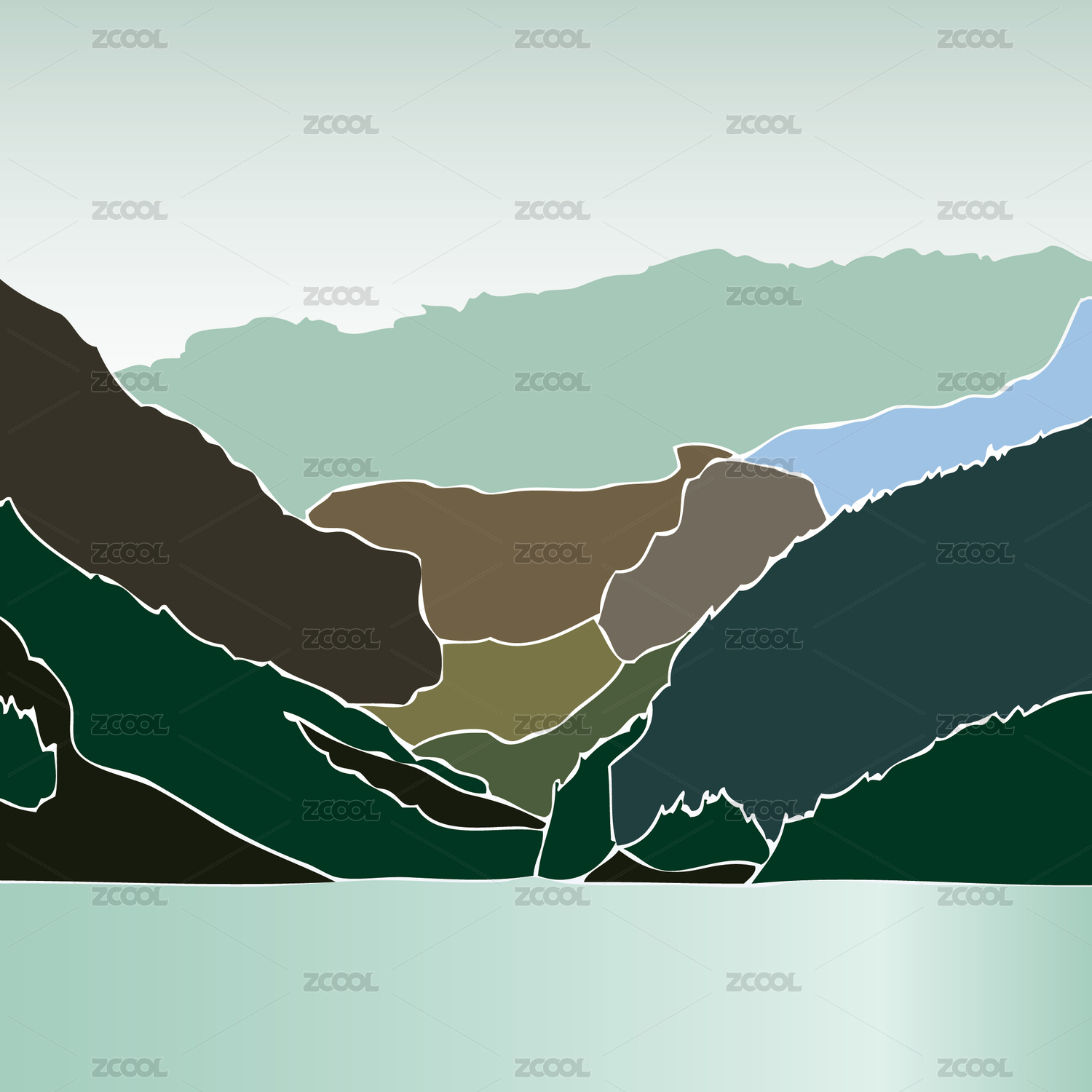 阿爾卑斯山 新疆天山牧場矢量插畫風(fēng)景