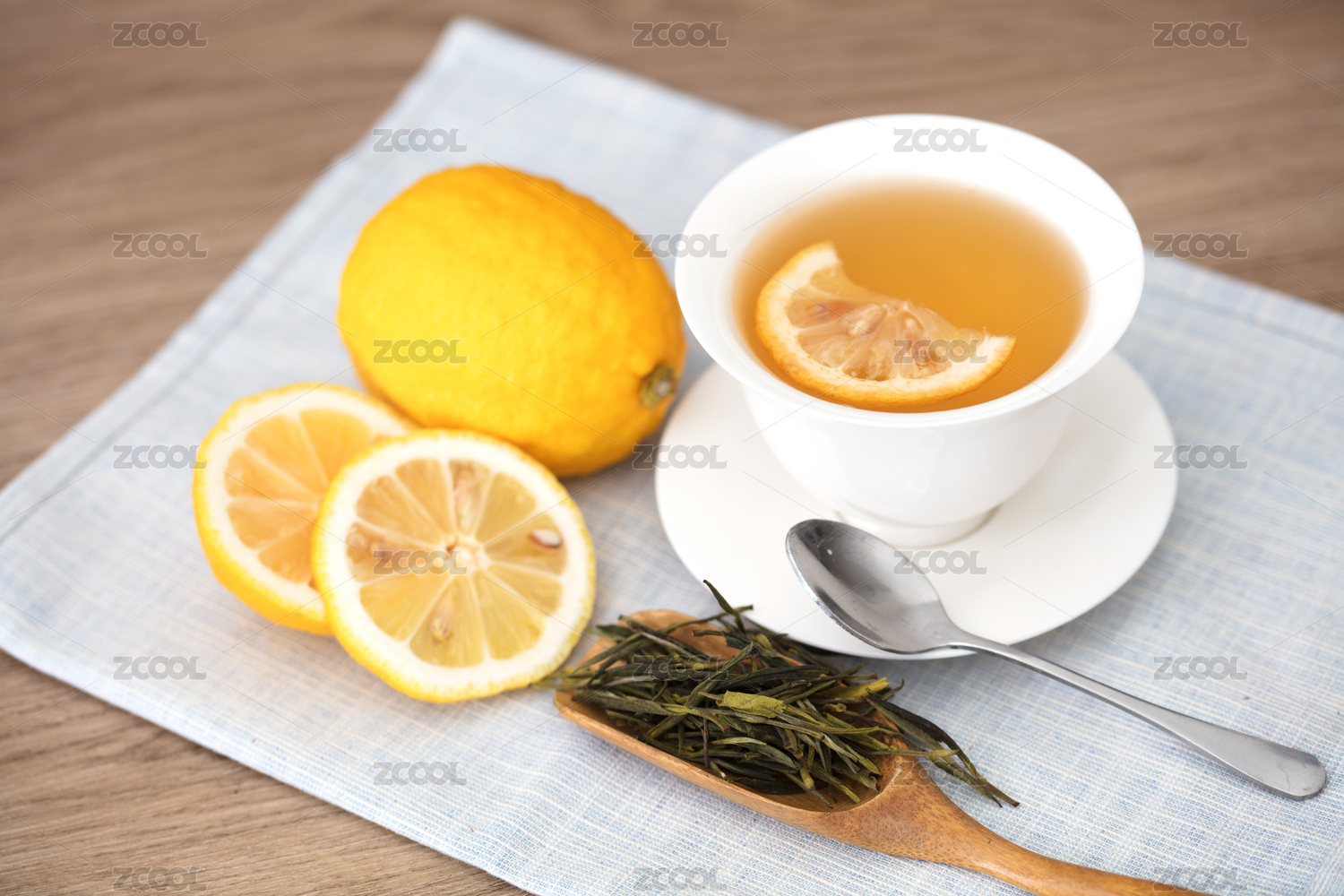 明亮的茶湯里泡著一片檸檬及蓋碗旁的檸檬果