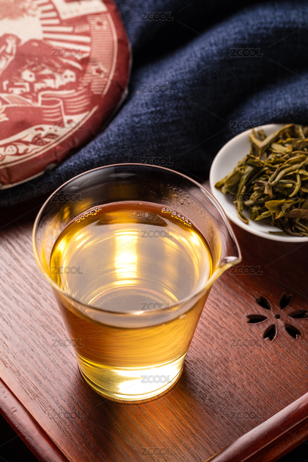室內(nèi)茶盤上的玻璃茶壺和茶湯