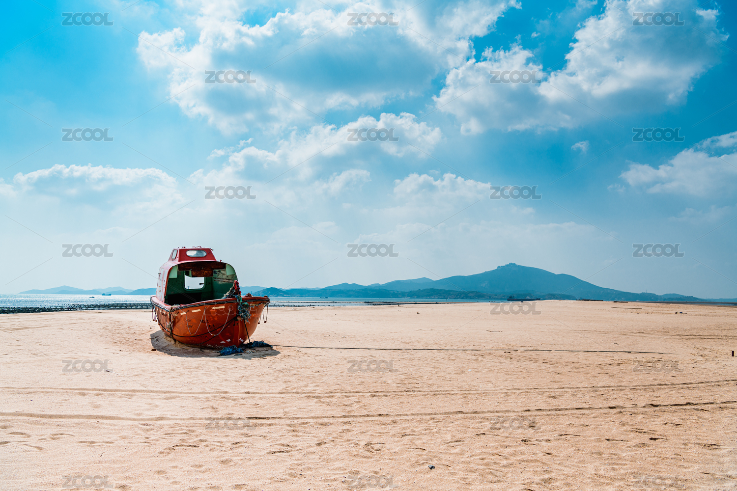 中國(guó)福建福州市平潭縣象鼻灣擱淺的漁船