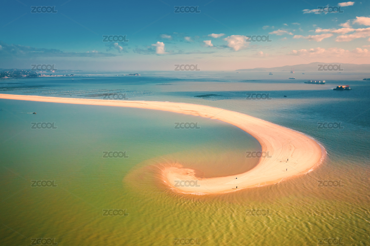 俯瞰福建平潭島象鼻灣沙灘及周邊風(fēng)景