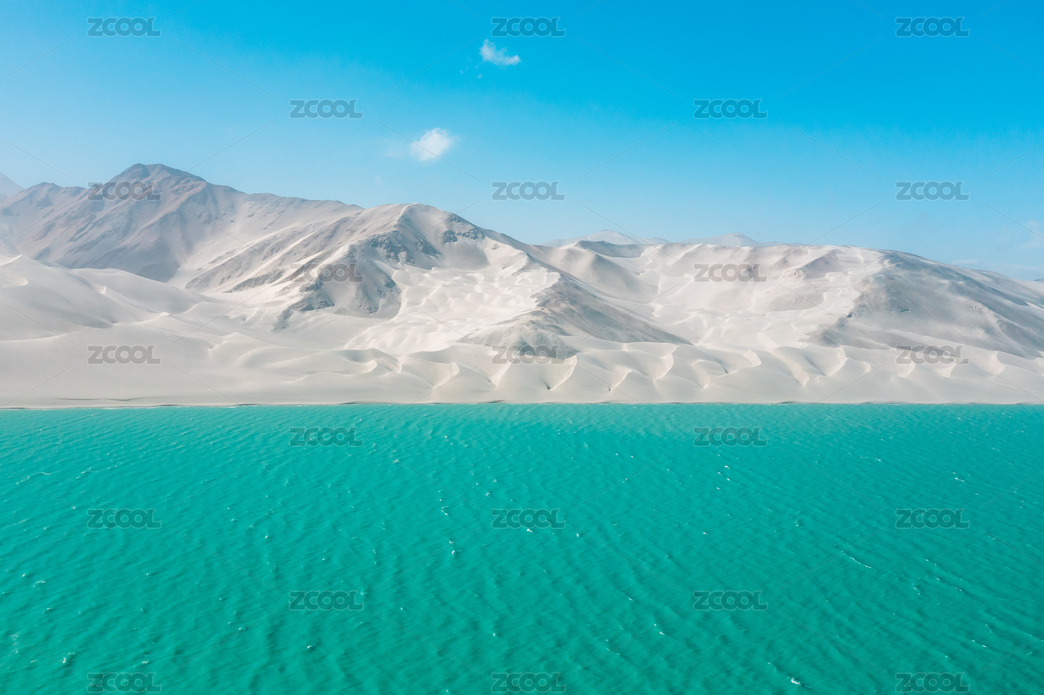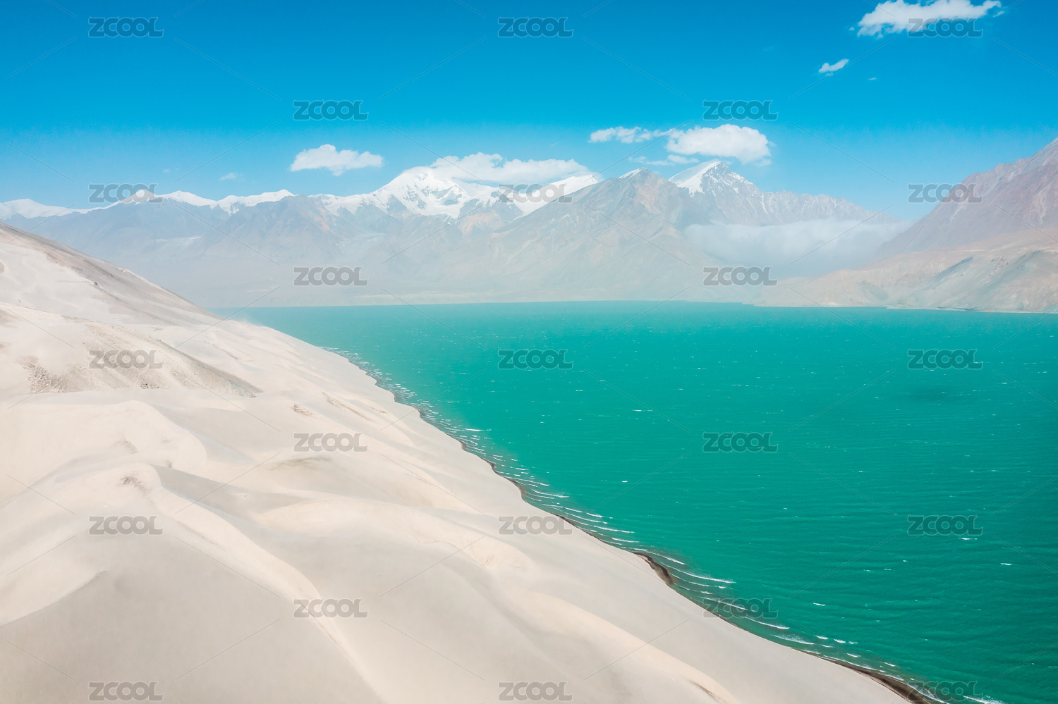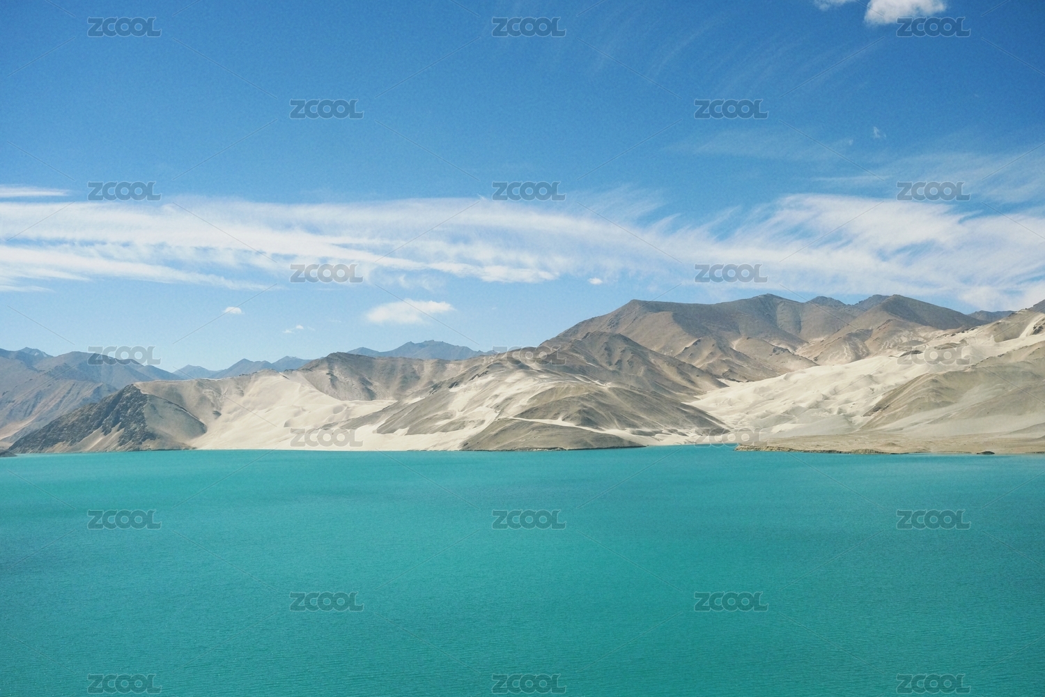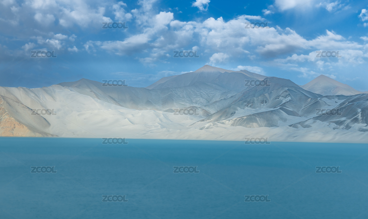 中國新疆帕米爾高原白沙湖白沙山美麗晴天風(fēng)景
