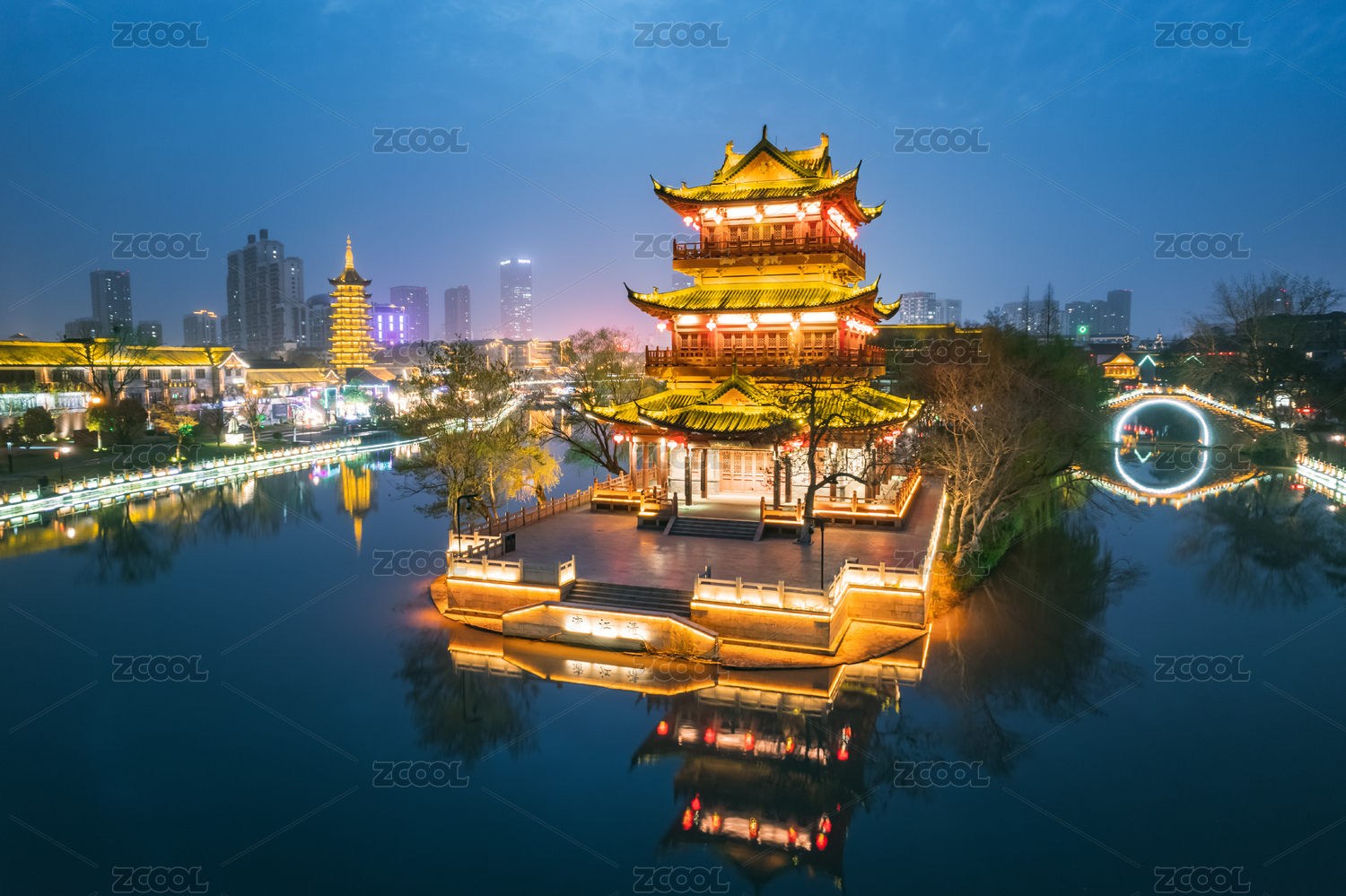 江蘇淮安市里運河歷史長廊清江浦樓航拍夜景