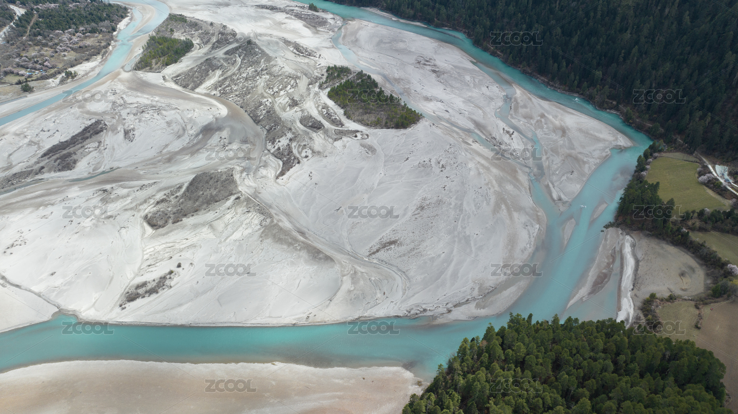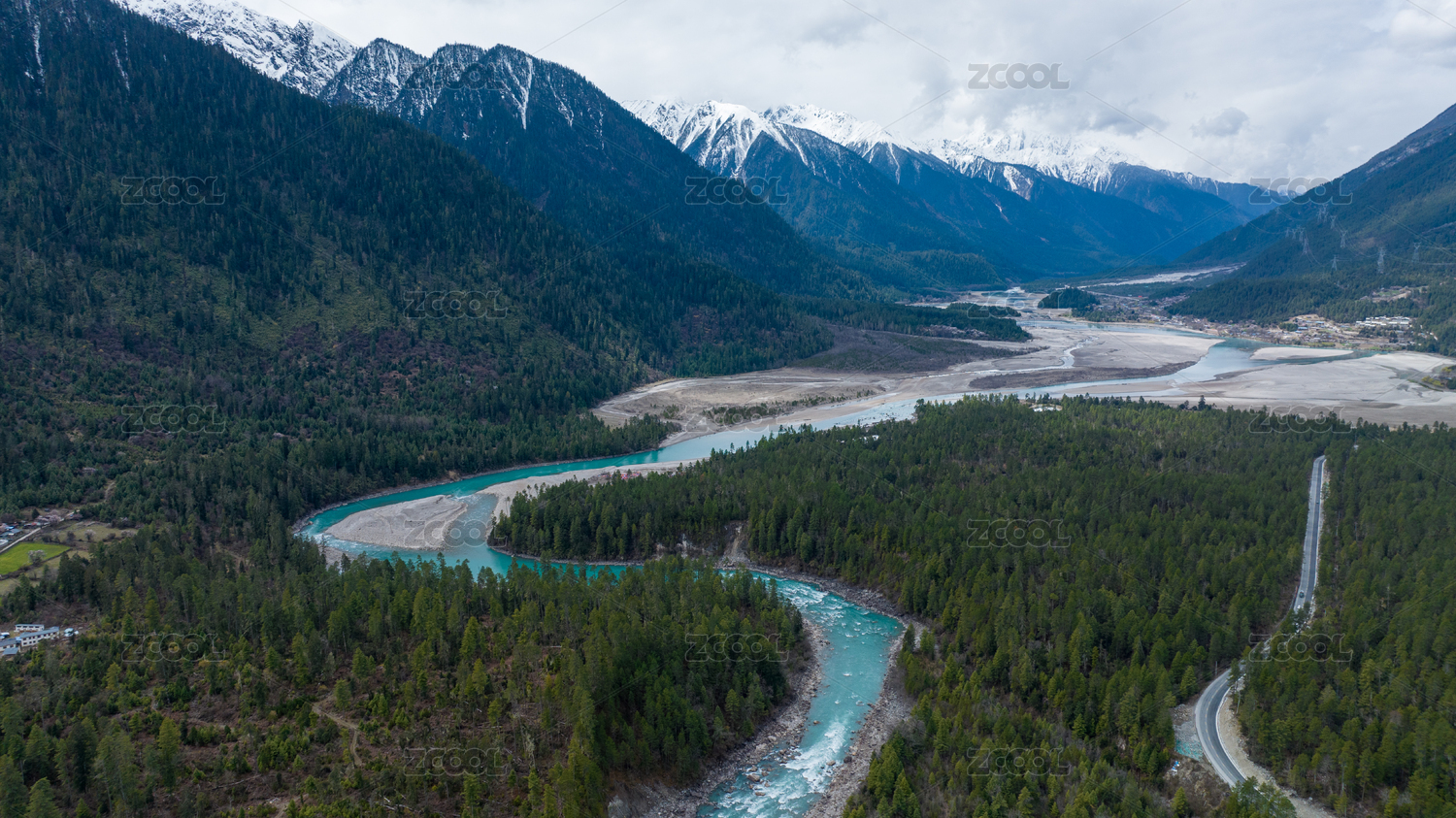 俯拍中國西藏林芝碧綠的雅魯藏布江景觀