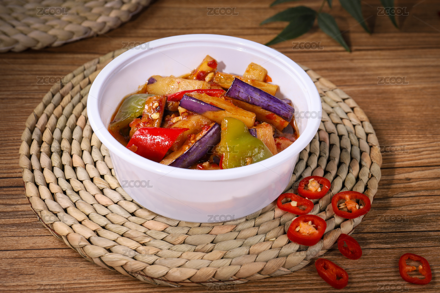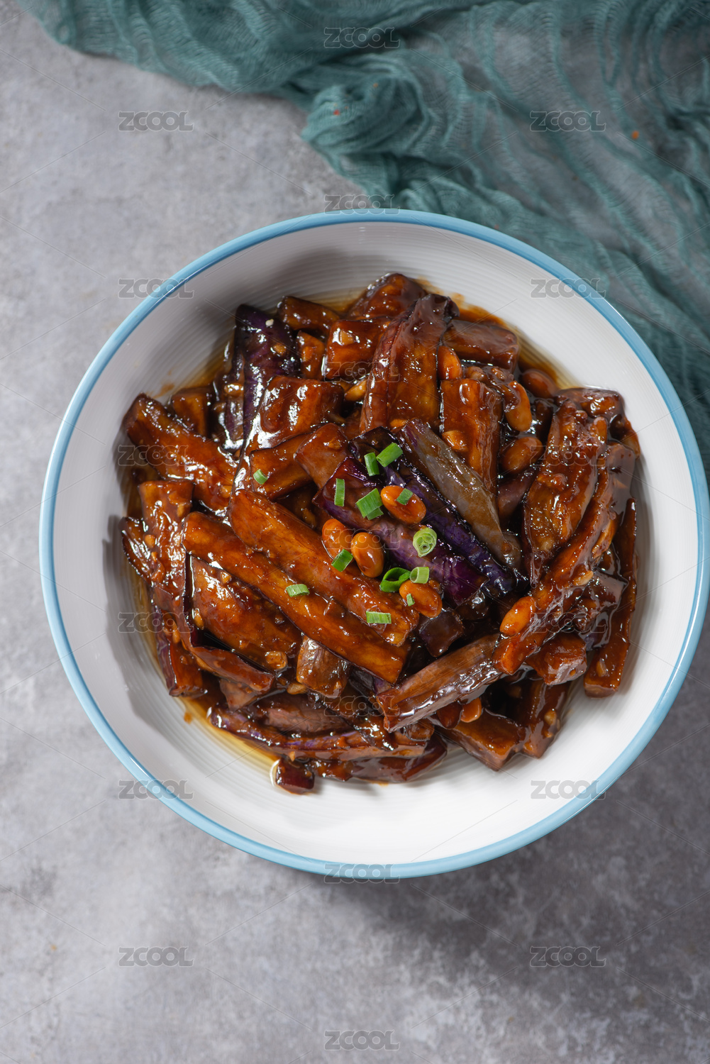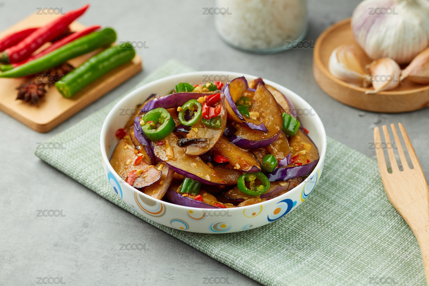 復古背景上碗里的地三鮮炒茄子