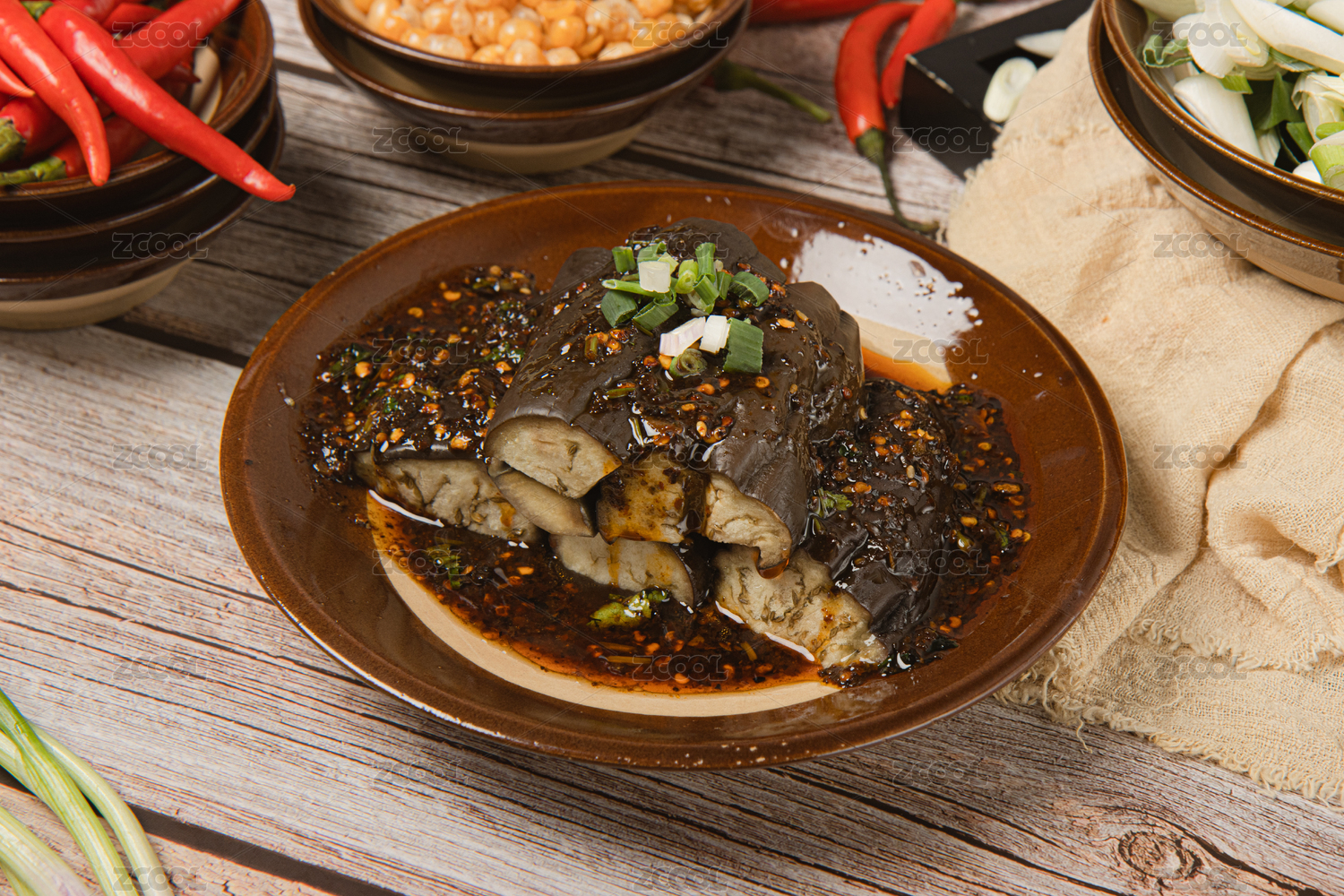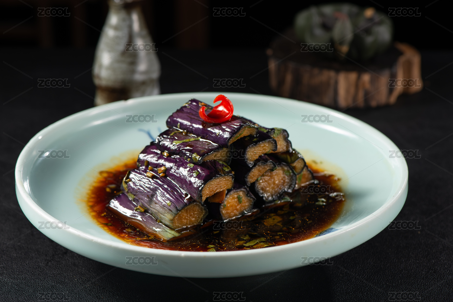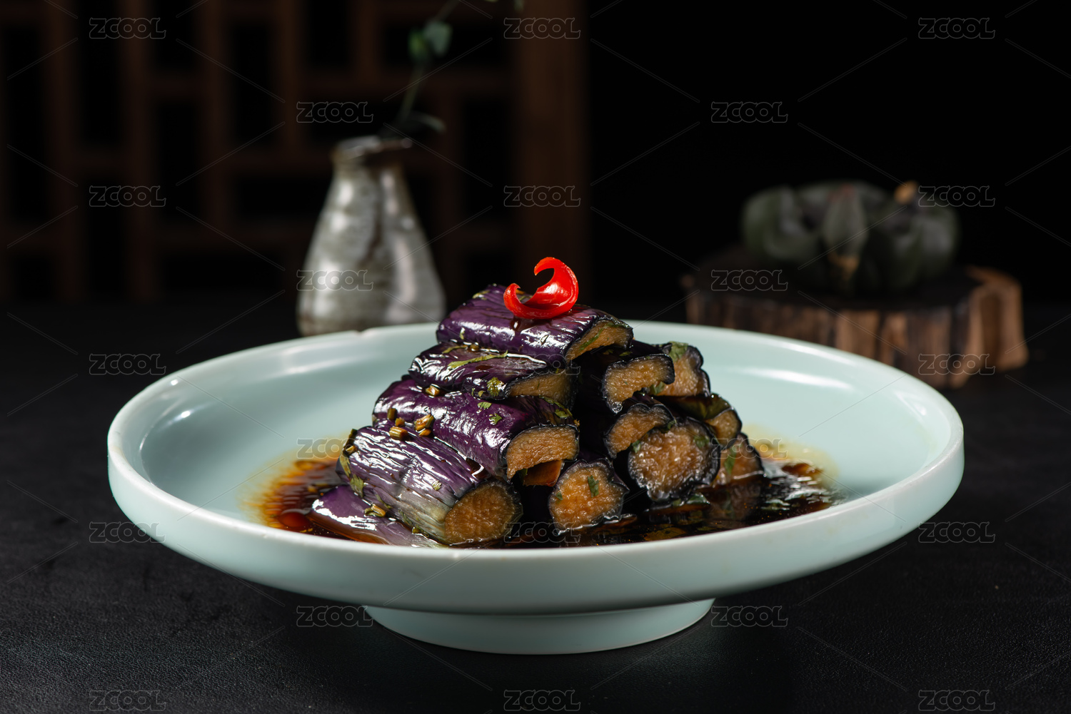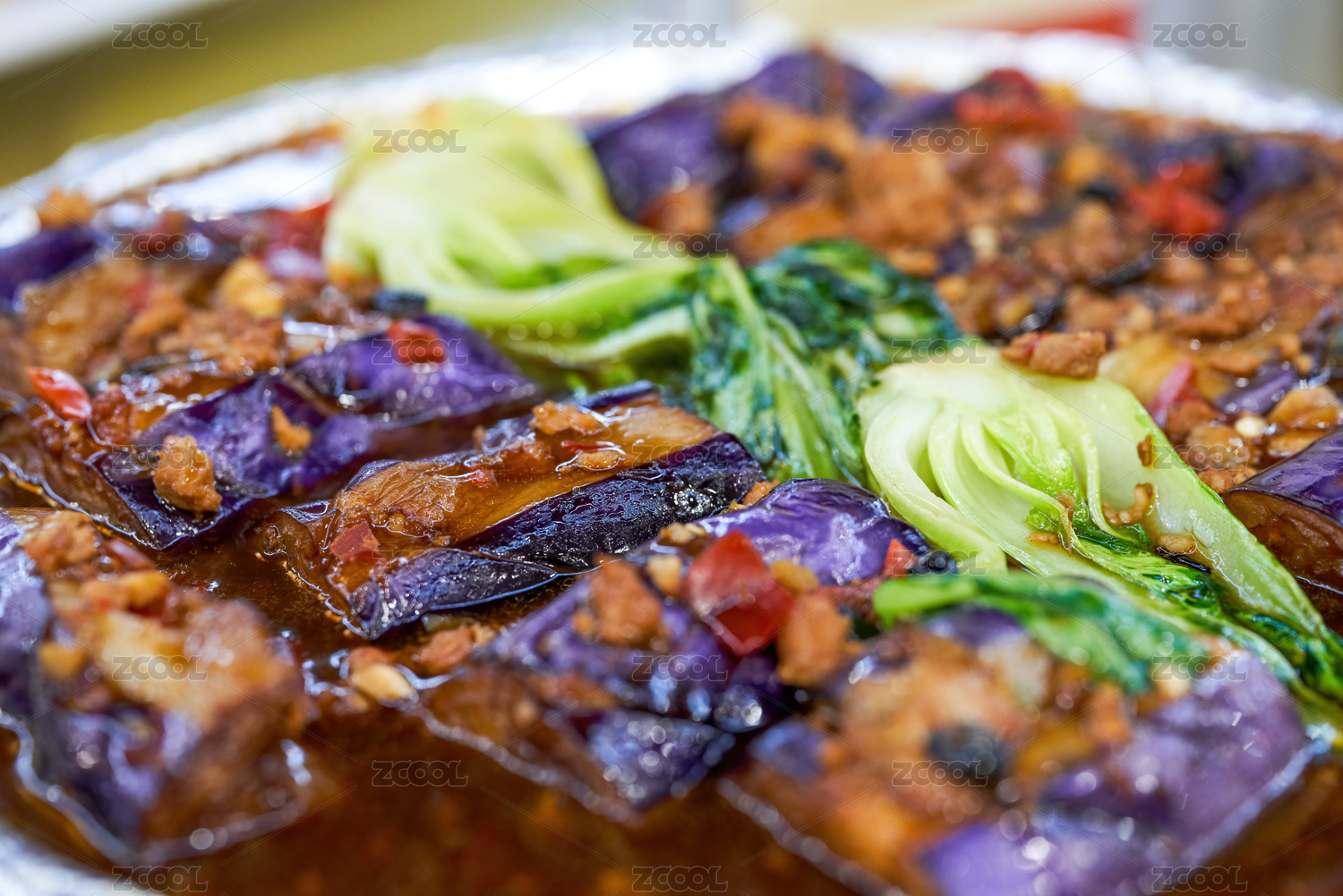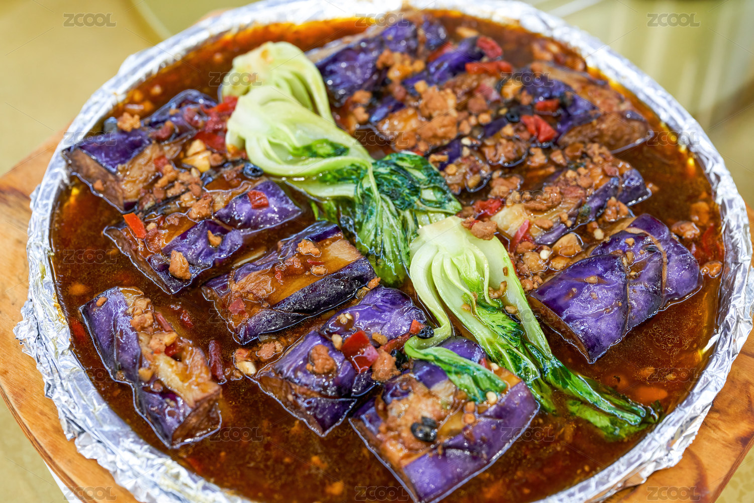 中式桌面上擺放的魚香茄子