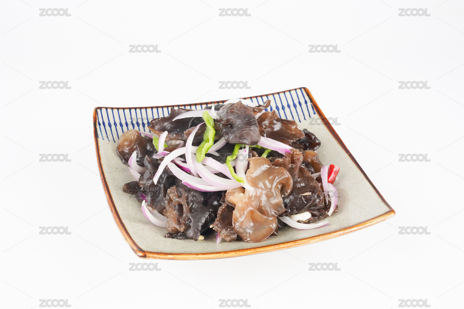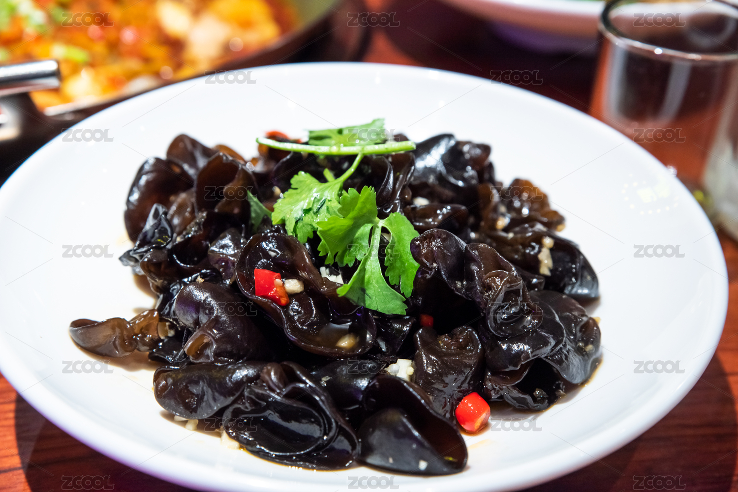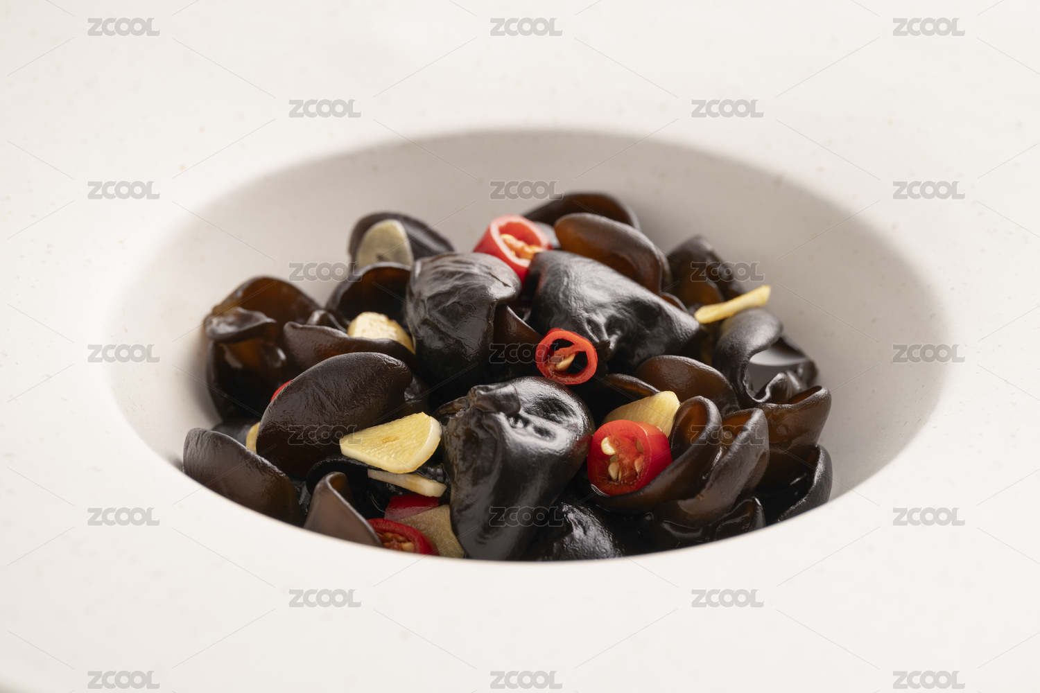 下酒菜涼拌菜涼拌黑木耳盛放在白瓷盤中