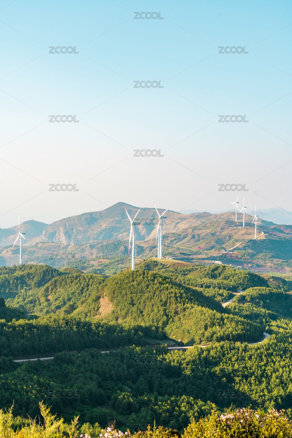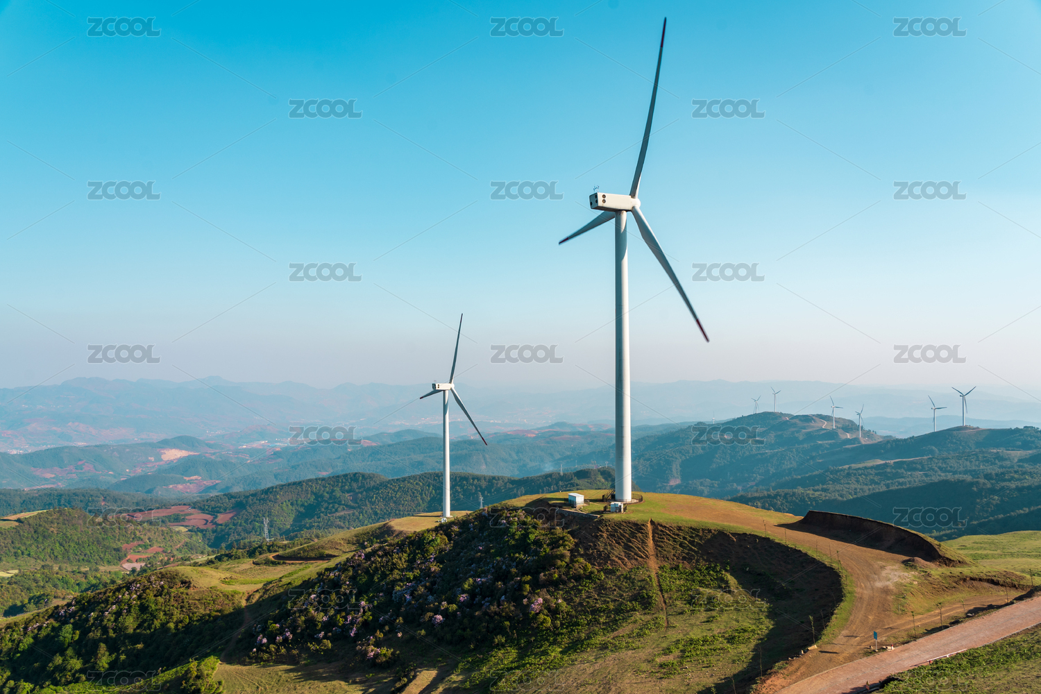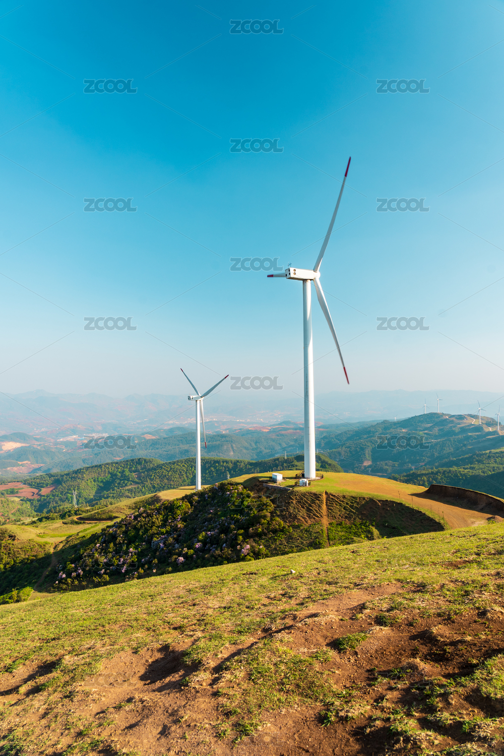 云南玉溪磨豆山風(fēng)電站大型風(fēng)車與草原