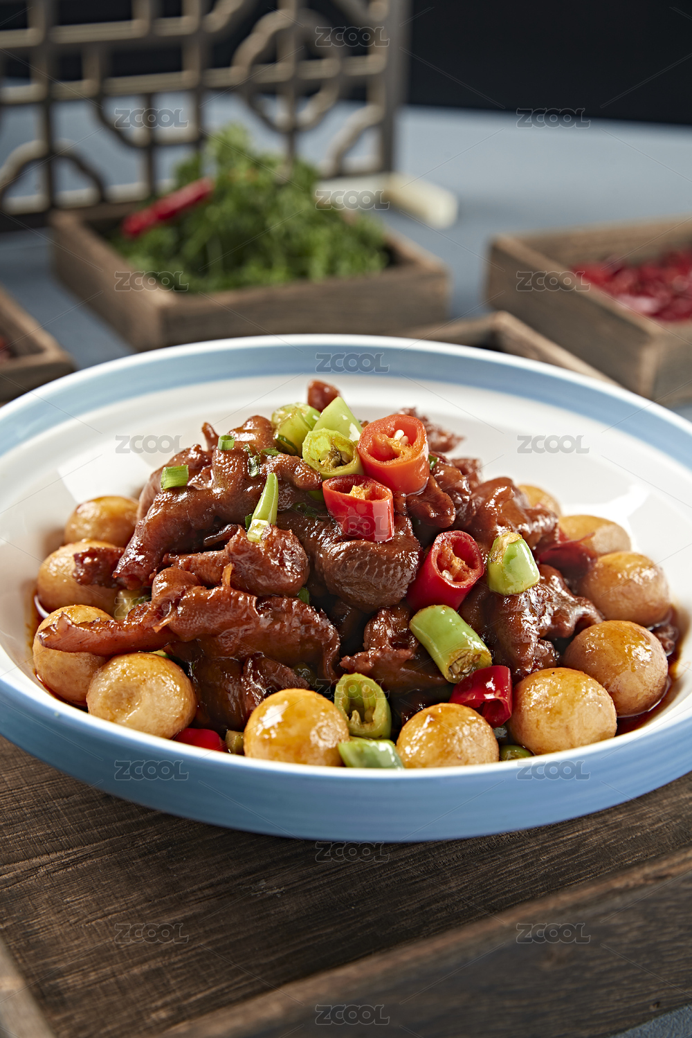 香辣美味的紅燒雞爪盛放在砂鍋中