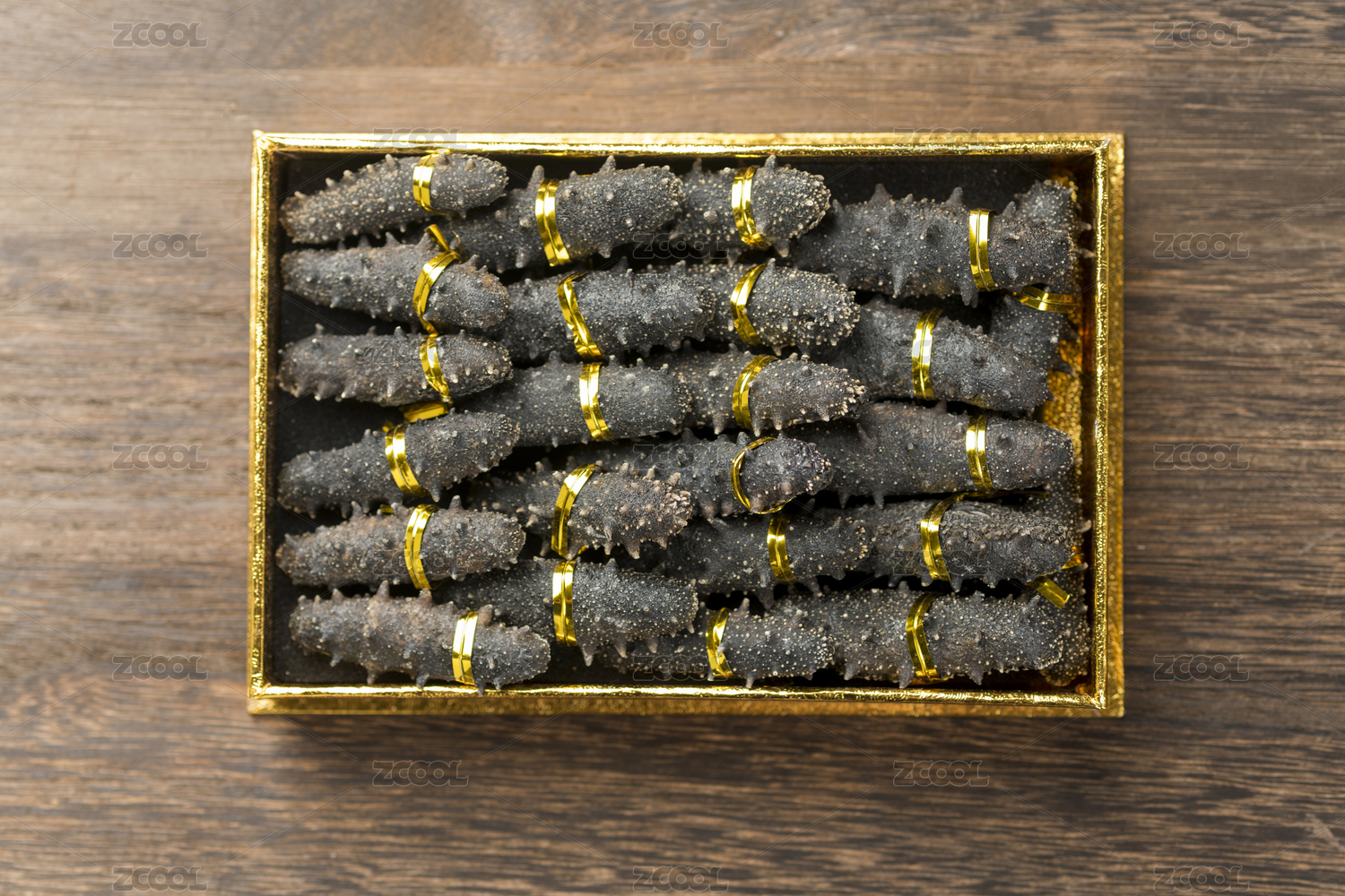 一盒海參禮盒特寫木桌面背景
