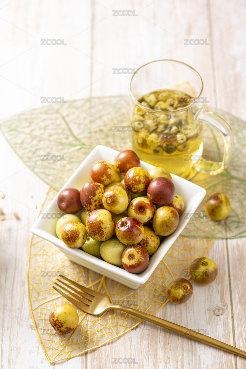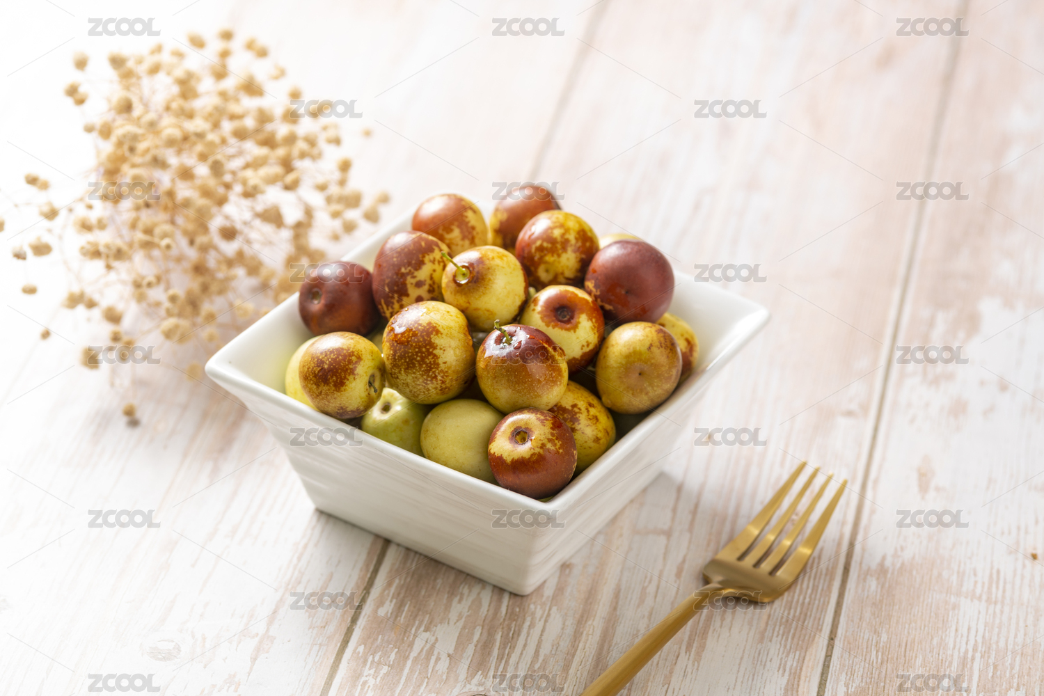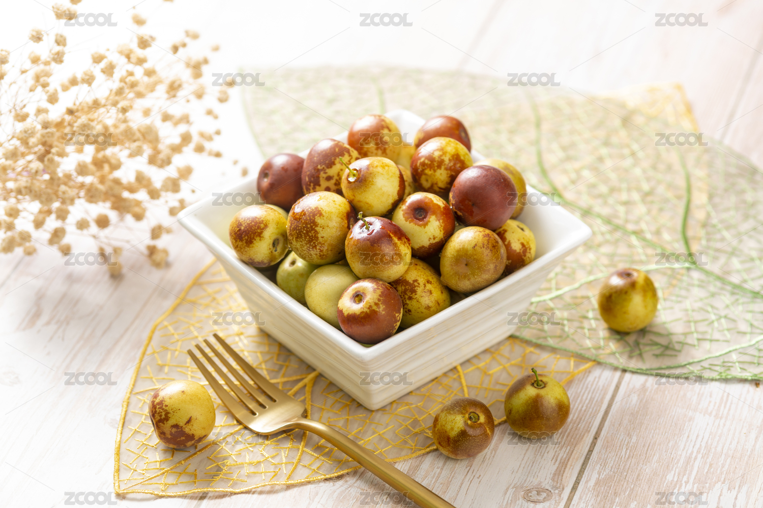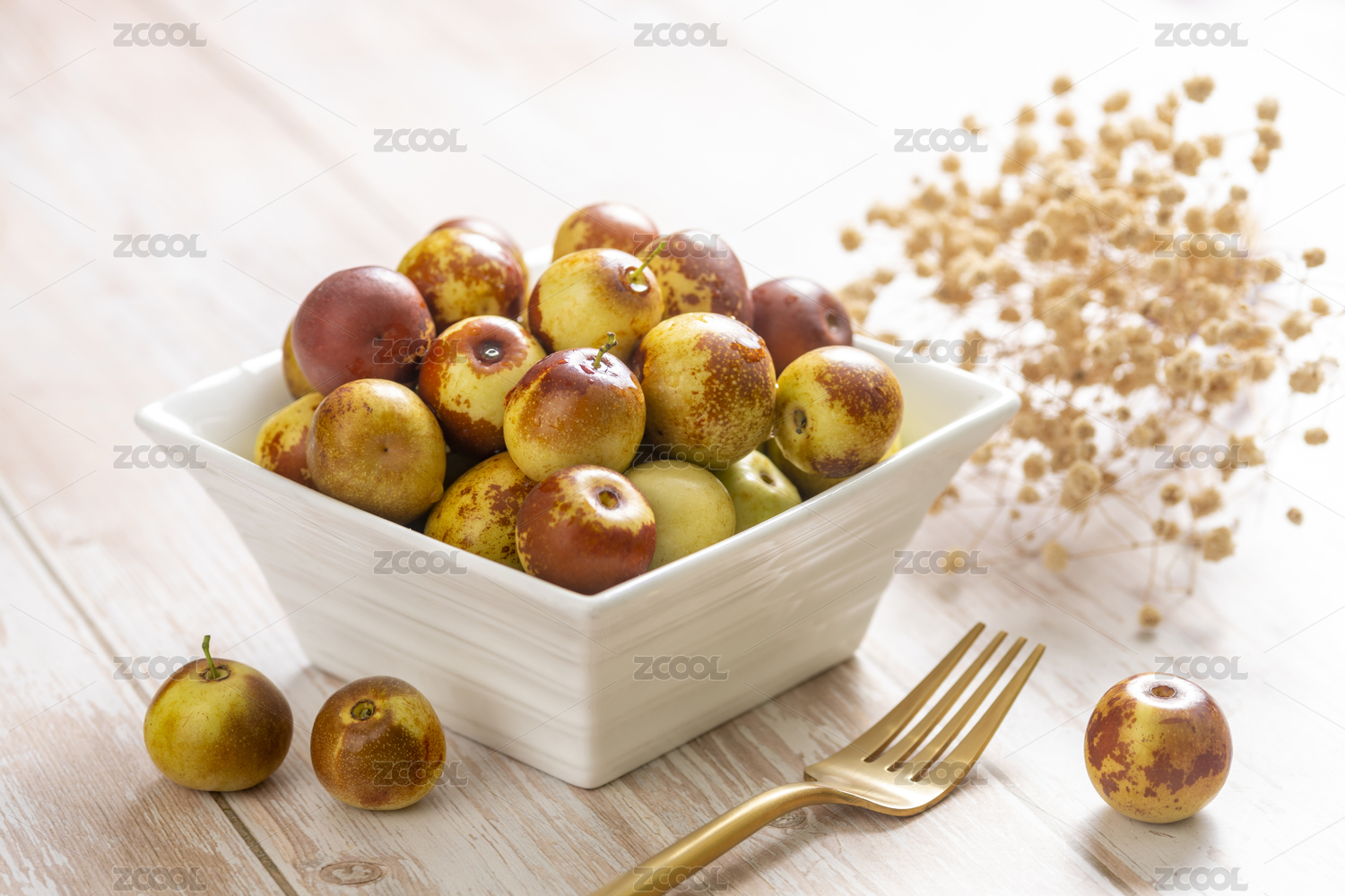 新鮮的冬棗擺放在木桌面上